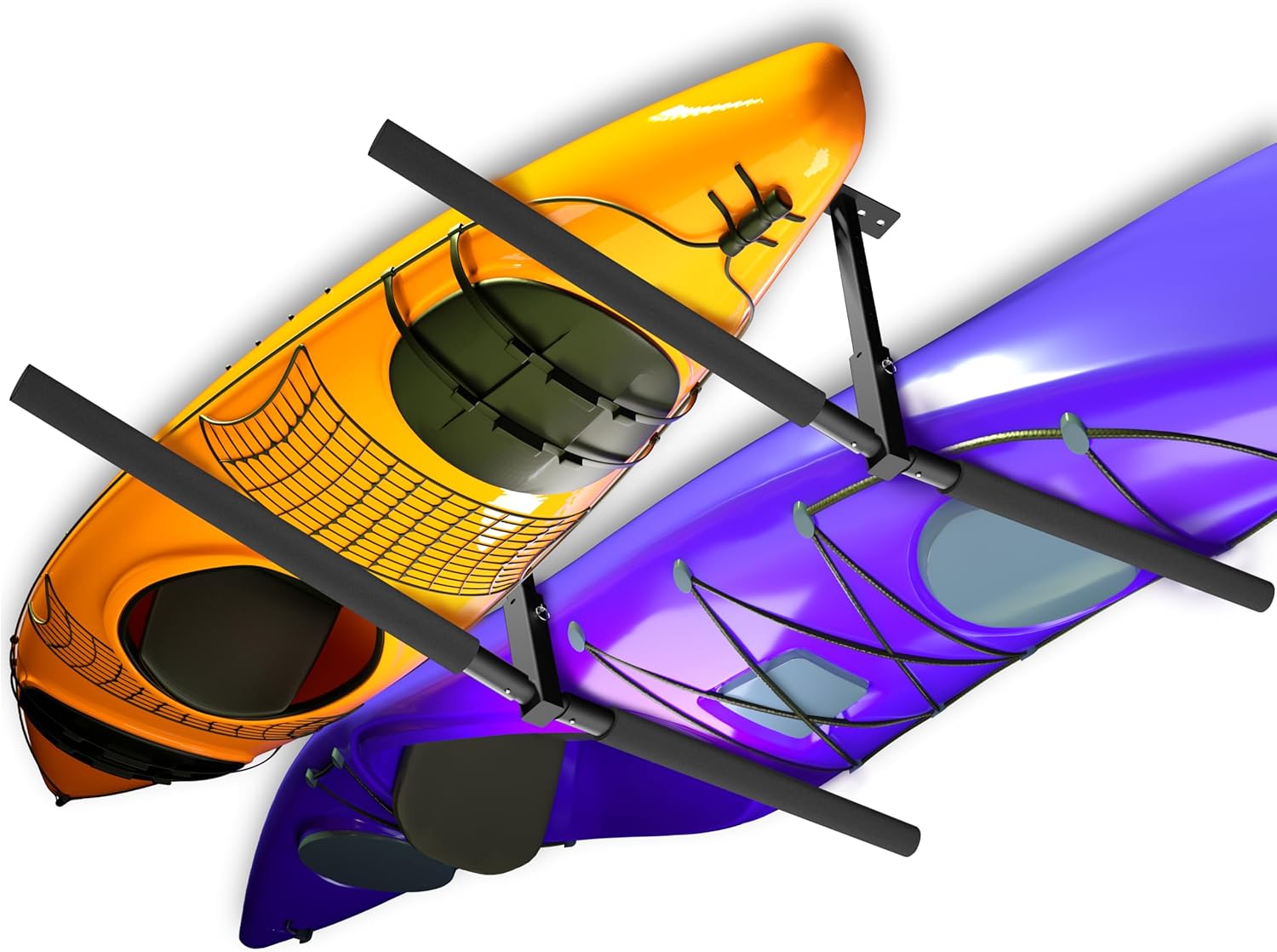 Double Kayak/Ladder Ceiling Storage Rack, Hi Port 2 Ladder Hanger Overhead Garage Kayak Ladder Rack, Holds 200 lbs, Adjustable Height Design, Black