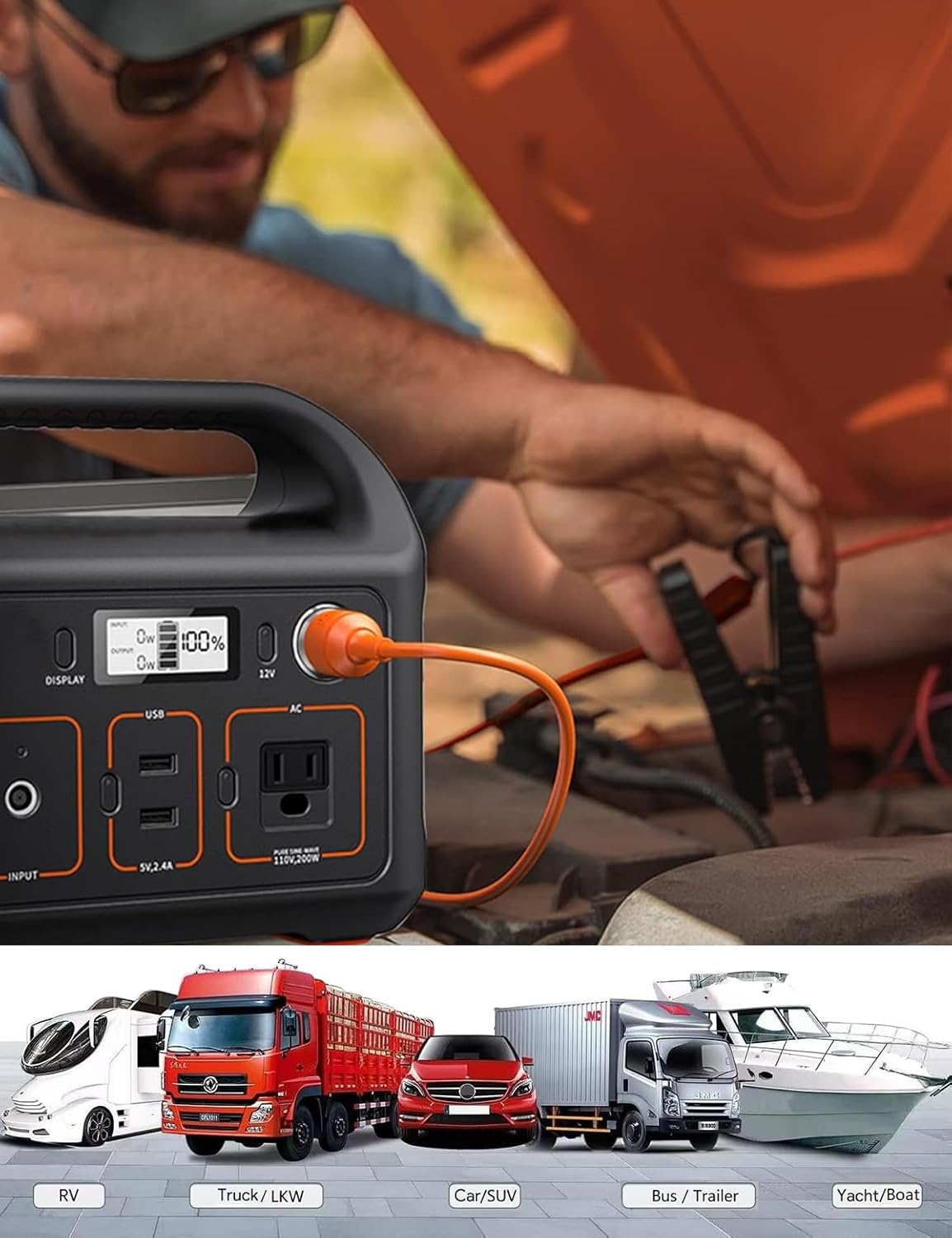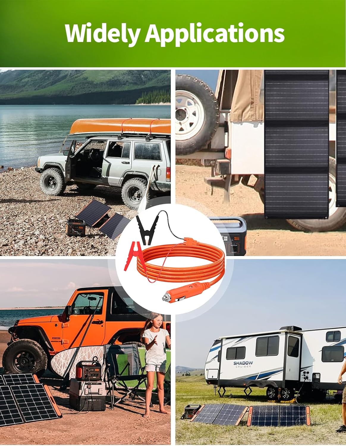 - [Versatile Charging for Multiple Vehicles] Whether you need to charge your car, RV, motorcycle, boat, trailer, tractor, or truck, this alligator clip to male cigarette lighter extension cable is the ideal solution. Compatible with 99% of portable power stations and solar generators such as Jackery, this cable efficiently charges 12V lead-acid batteries ranging from 20-200Ah. It's perfect for outdoor adventures, emergency situations, or simply keeping your vehicles powered up