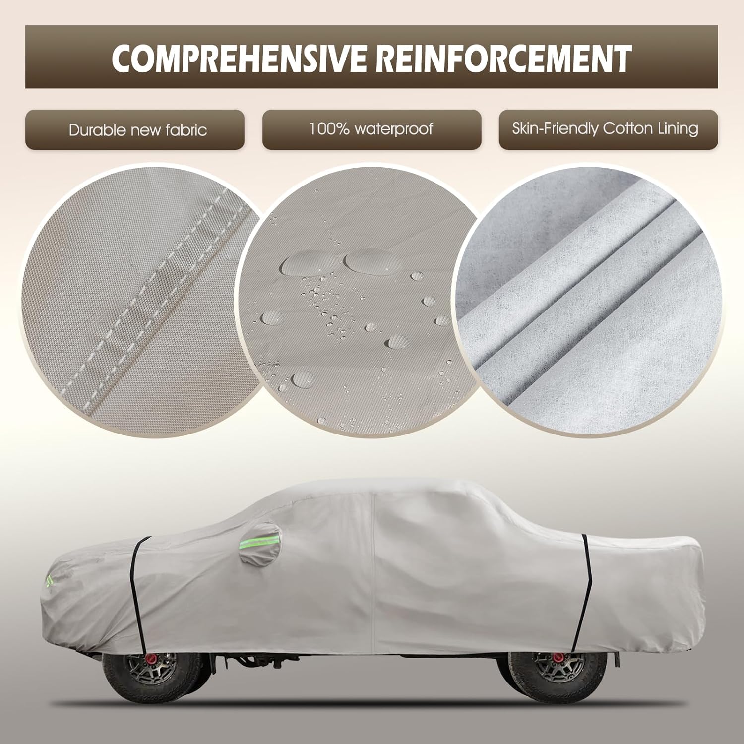 - All-Weather Protection: This car cover with soft cotton lining is custom design for Toyota Tacoma 2005-2025. It provides comprehensive protection for the car from all-weather factors in the four seasons of spring, summer, autumn, and winter, such as dust, snow, industrial pollution, bird droppings, leaves, pollen, acid rain, ultraviolet light, intense sunlight, heavy rain, etc.