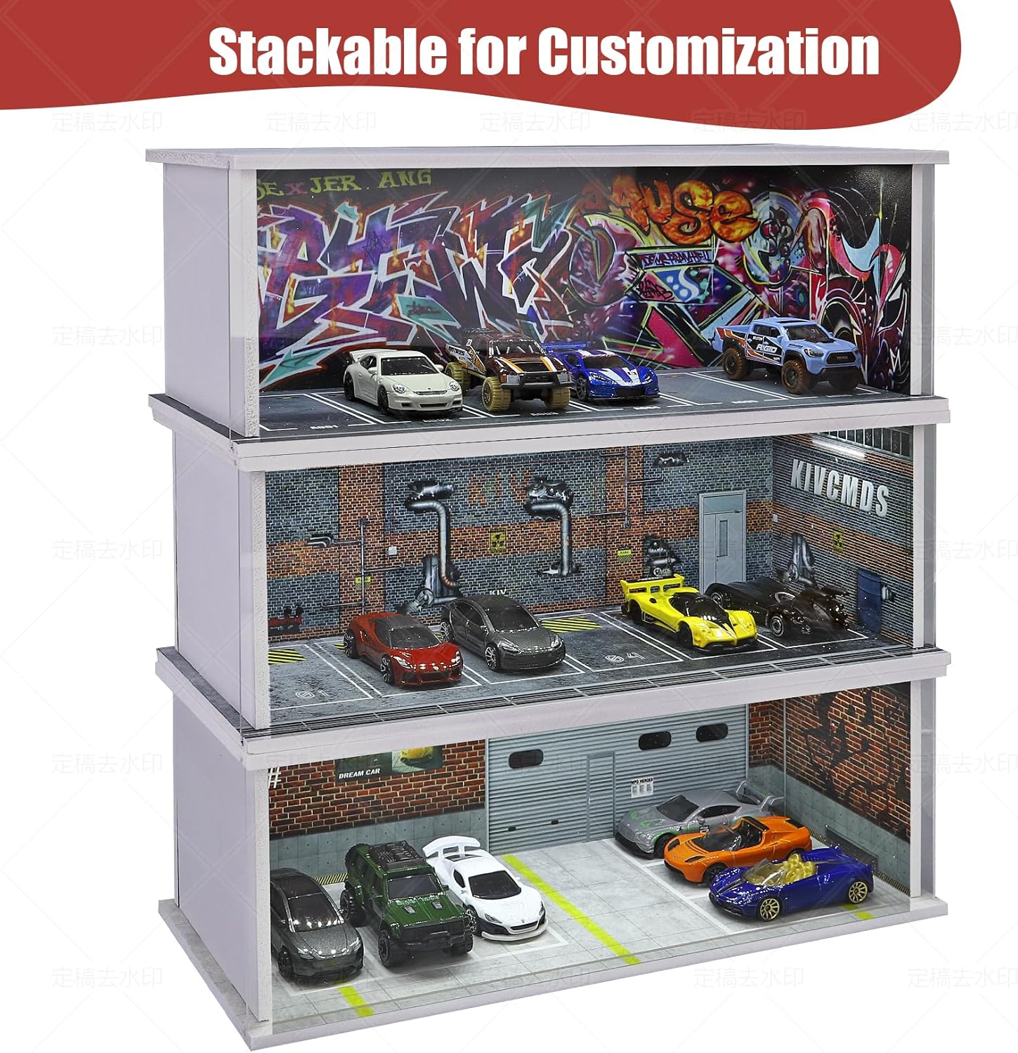 - 1/64 CARS DISPLAY GARAGE: This Hot Wheels display case is designed to storage and display 1:64 scale model cars, including most brands such as Hot Wheels, Monster Truck and MatchBox with 6 parking spaces on each level