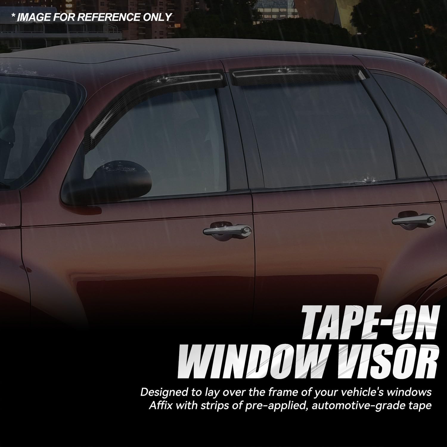 Auto Dynasty 4Pcs Carbon Fiber Pattern Window Visors Compatible with 2001-2010 Chrysler PT Cruiser, Tape-On Front & Rear Window Deflectors Rain Guards Side Vent Shade, Exc Convertible, Glossy Black