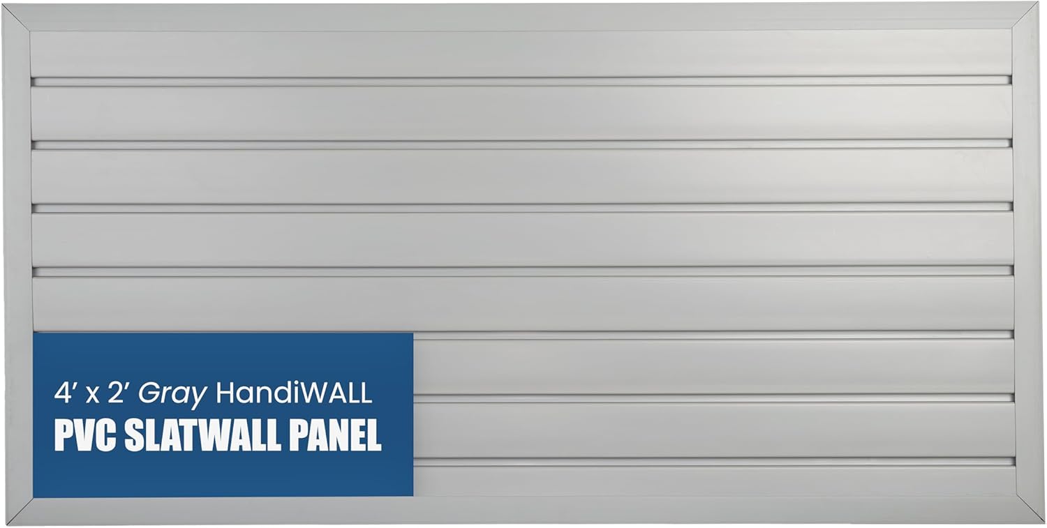 HANDIWALL (GRAY) PVC Slatwall Garage Wall Organizer, 4x2ft Heavy Duty Framed Slatwall Panel Storage Kit, Wall Mount Organizing Storage System For Slatwall Accessories