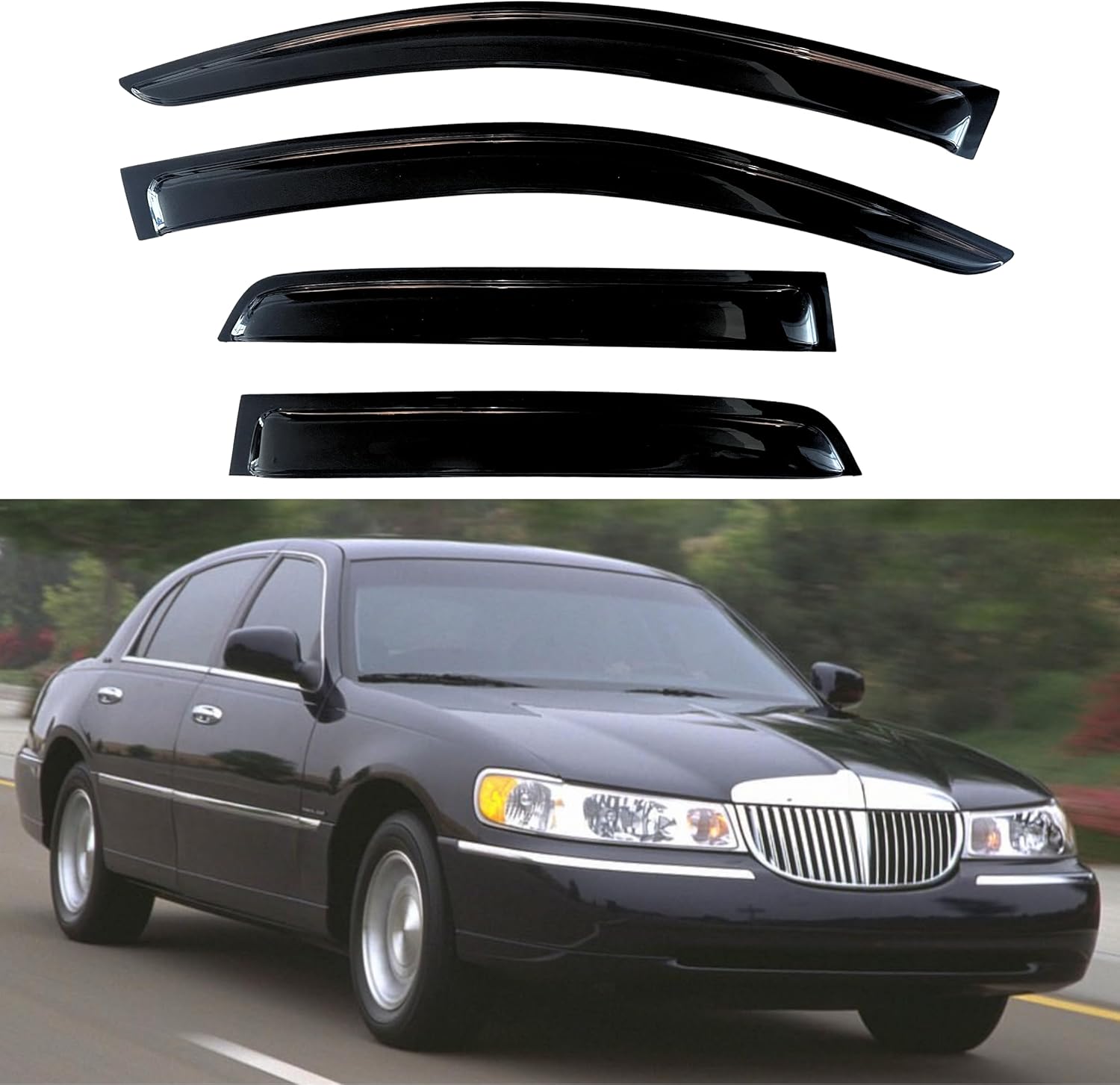 - 【Perfect Fit】KPY window visors rain guards vent deflectors compatible with Lincoln Town Car Sedan 1998-2010 (Sedan Only)