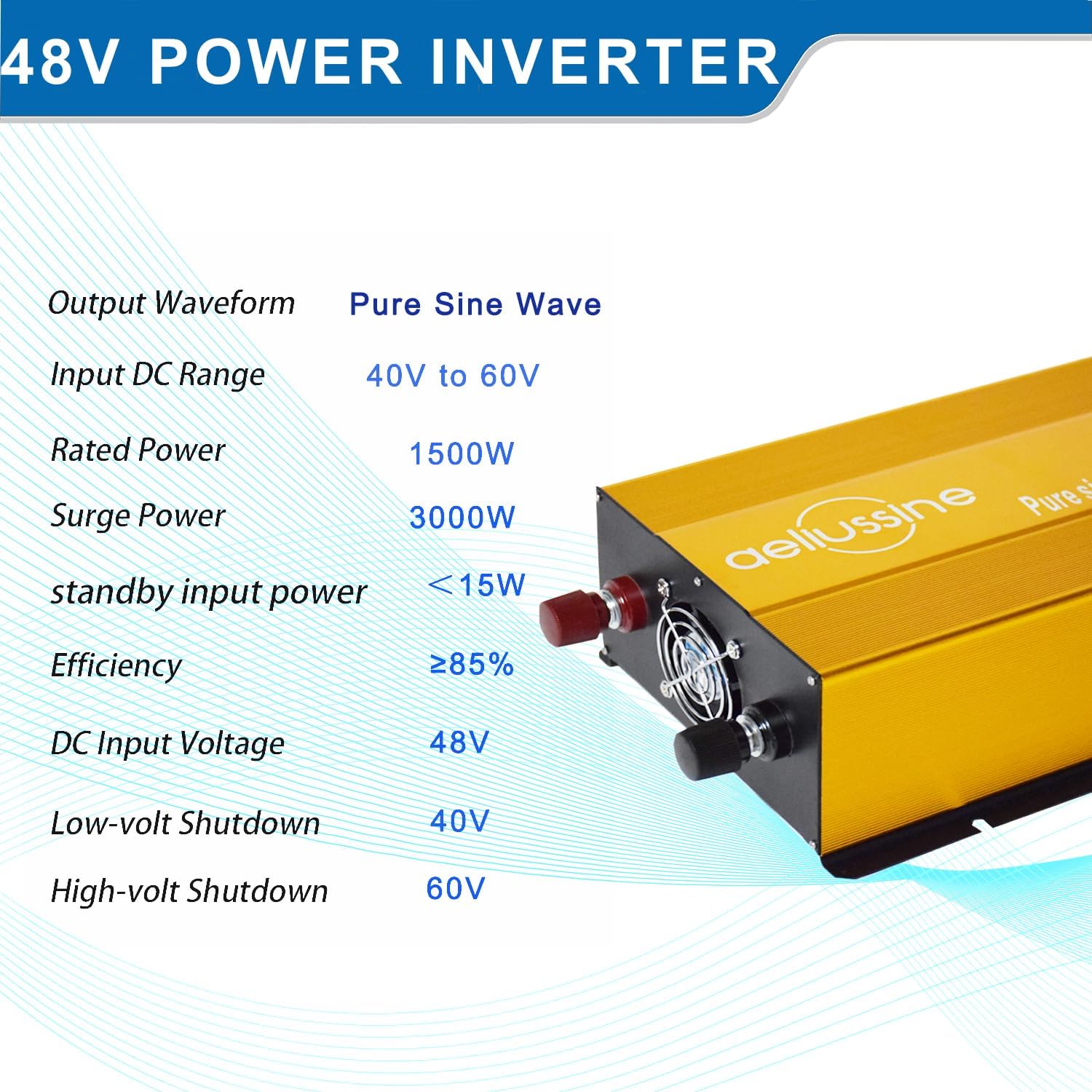 1500W Pure Sine Wave Inverter-48V DC to 110V 120V AC Power Converter with 2 AC Outlets, 48 Volt Power Inverter for Truck, Rv, Camping, Home, Emergency Power