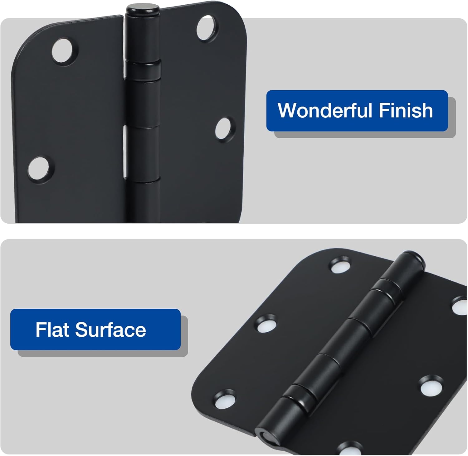 12 Pack Anti Squeak Matte Black Door Hinges 3.5 Inch 5/8" Radius Round Ball Bearing Interior 3-1/2"Flat Bifold Standard Bedroom Indoor for Doors 3 ½" Hardware Essentials House Home Decor Accessories