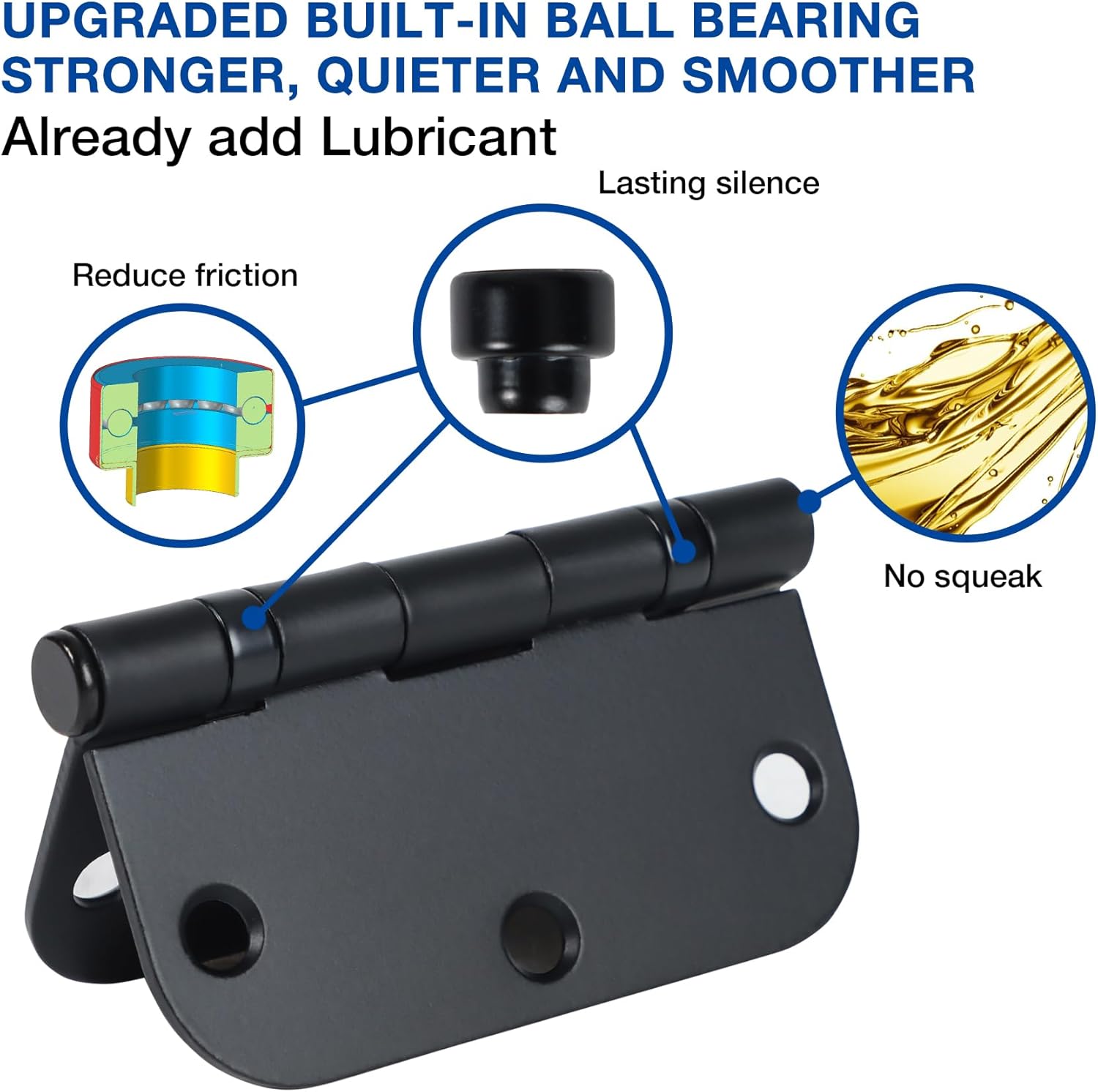 24 Pack Ball Bearing Door Hinges Matte Black 3.5 Inch 5/8"Radius Rounded Squeak Free Interior 3-1/2"Flat Iron Bifold Standard Office Bedroom Indoor for Doors 3 ½" Hardware Home House Decor Essentials