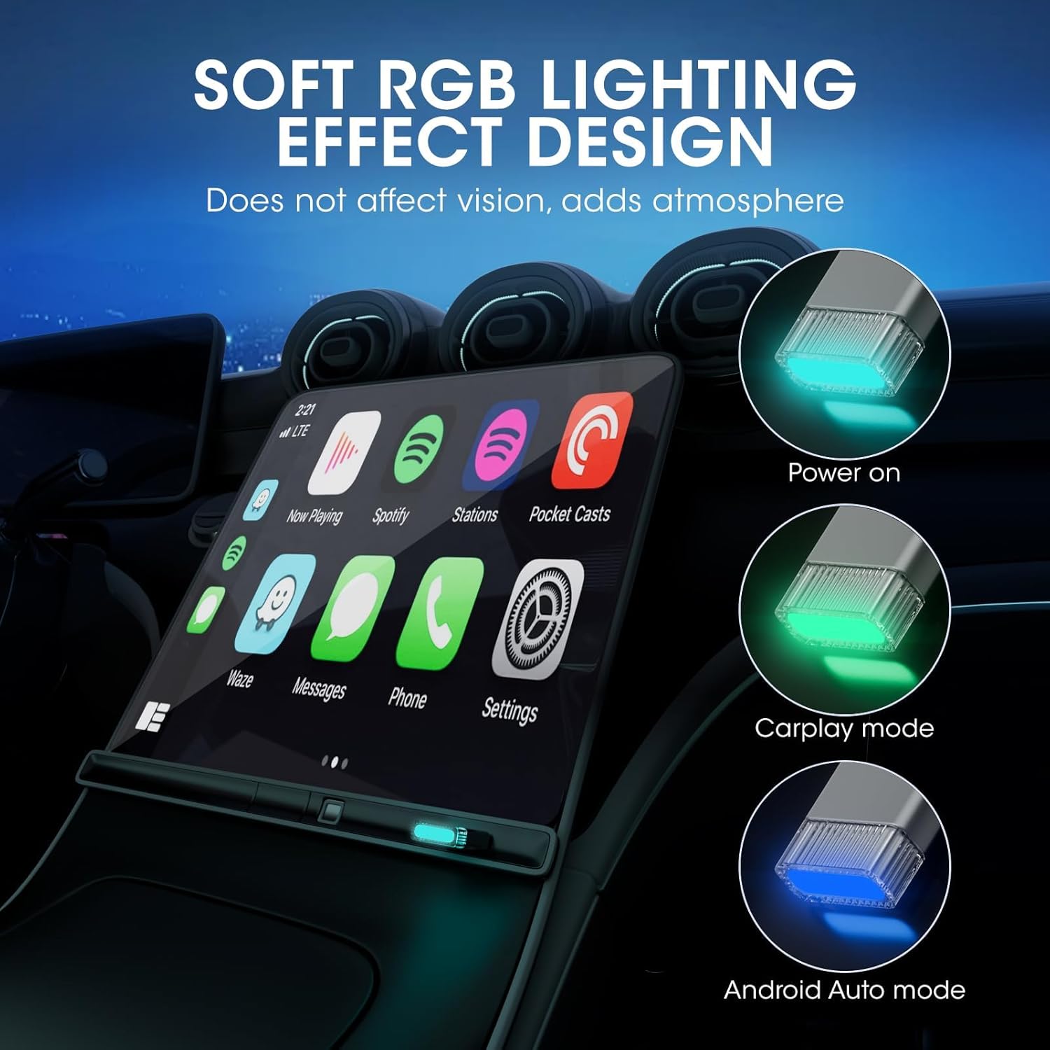 - PLUG/PLAY EASY SETUP THEN AUTO-RECONNECT: No need apps or software electronics,Complete the first connect in 10seconds and auto reconnect in 3seconds (Bluetooth + Wifi). Experience transmission speeds 5times faster than other adapters.This stable bluetooth carplay adapter car play eliminates the frustration of connection drops and ensures quick response times and zero delays low Latency.