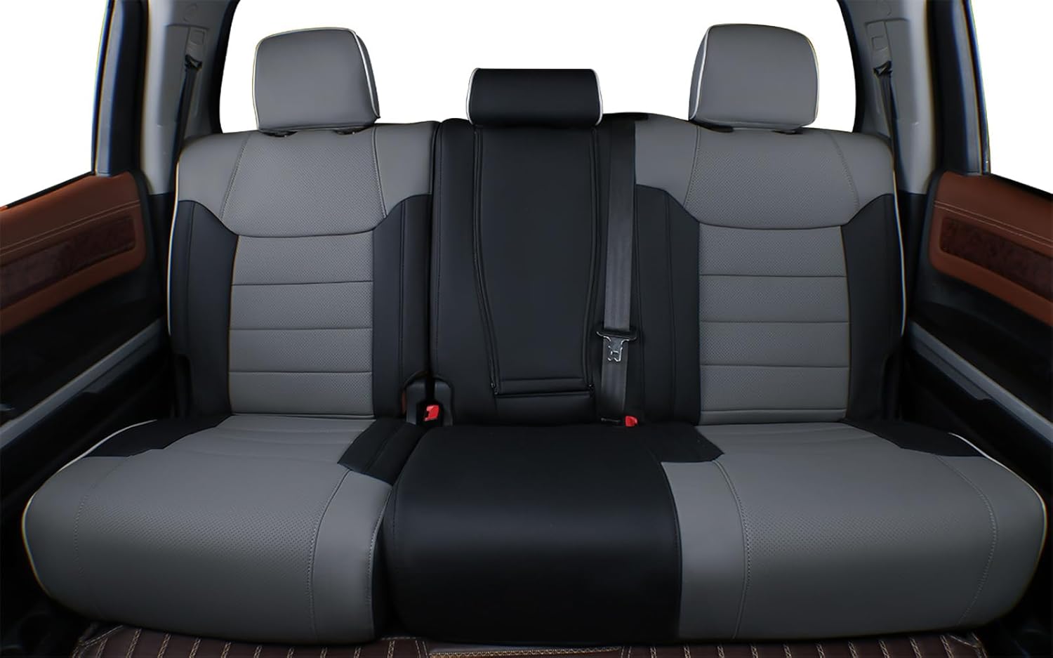 EKR Tacoma Back Seat Covers Custom for Select Toyota Tacoma (Hybrid) 2024 2025 Double cab TRD Sport,TRD Off-Road,Limited,Trailhunter- Second Row Only,Leather (Black/Gray)