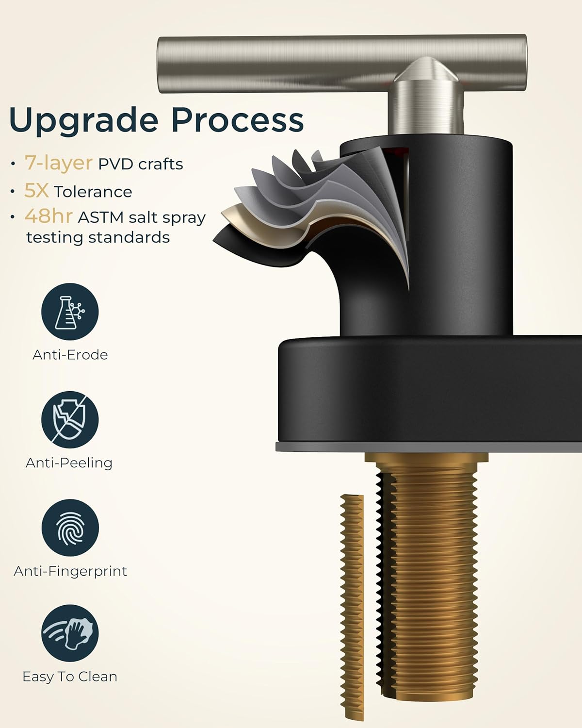 - NOBLE SKIN: This elegant matte black bathroom faucet finish brings a calming presence to your bath, which pairs elegantly with both traditional and contemporary decor. The surface has passed the 24-hour acid salt spray test, no rust no peeling. It’s easy to keep beautiful. Flow rate: 1.2gpm/4.5L/min at Max 60psi