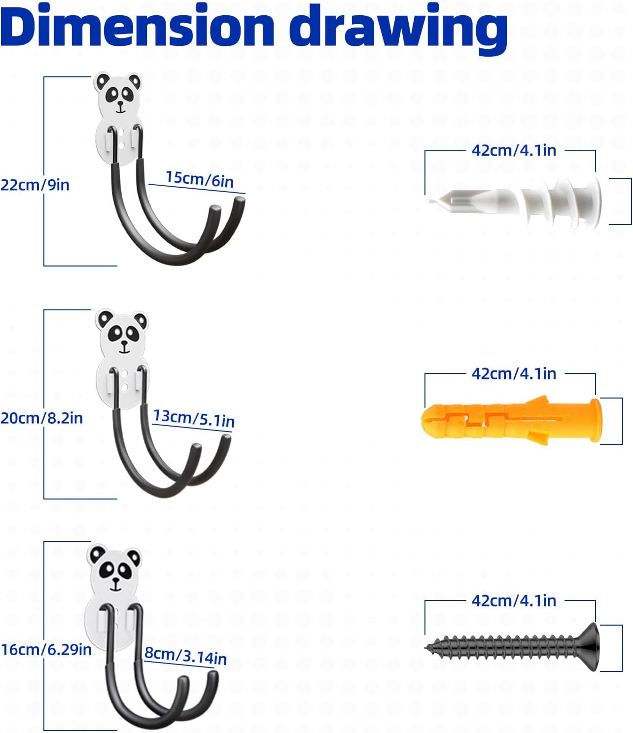 - Space Saving: Comes in 6 wall-mounted double hooks with 3 Sizes for hanging tools of different sizes and weights. These 6 large heavy-duty utility hooks create more possibilities to organize your bulk items and create an efficient tool storage space.