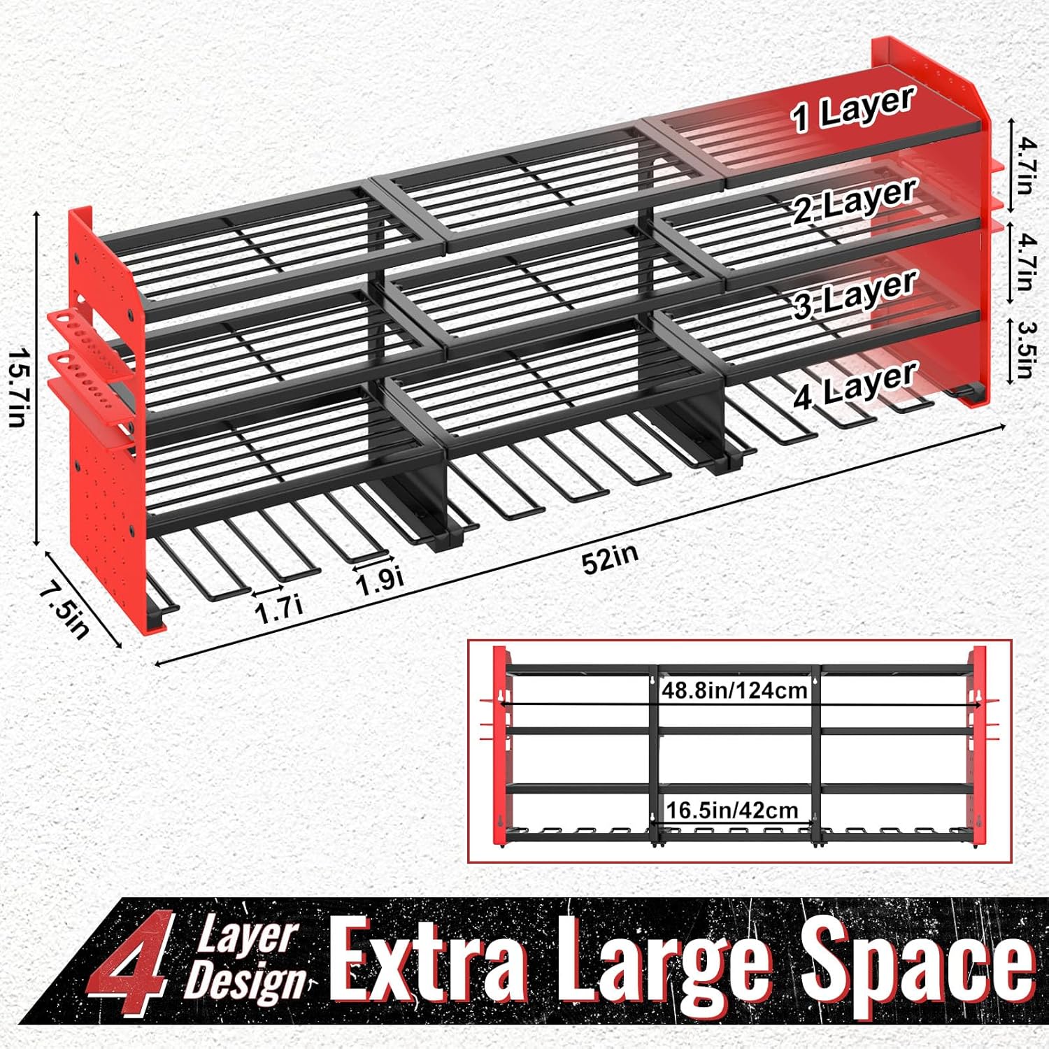 - 【Strong Weight Capacity】The tool storage for garage organization is made of thickened heavy-duty steel metal for greater weight capacity and durability,Each edge of the metal plates is polished to ensure a smooth finish, preventing any scratches to your fingers. The upgraded welding points and coating help prevent deformation while enhancing strength and longevity.