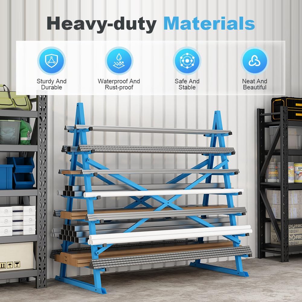Yeeoy Steel Horizontal Storage Rack, 7 Tier Detachable Lumber Storage Rack, Heavy Duty Adjustable Pipe Rack Lumber Organizer Shelf for Garage Workshop Shed Basement, Blue