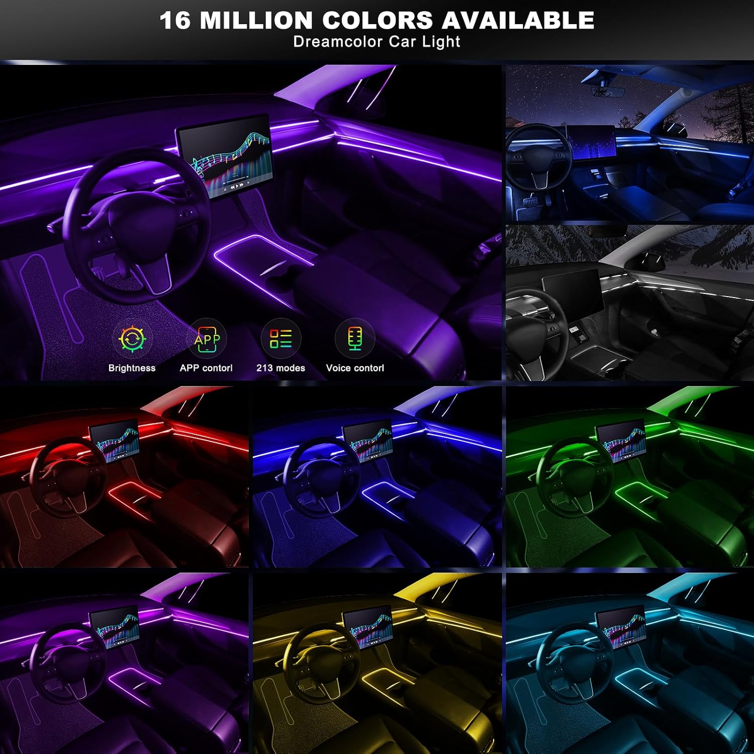 - ă16 Million Colors ăThe RGB Acrylic Interior LED Strips Lighting built-in RGB color mode looks like a regular bouncing, dancing and flashing bar. If you don't want a blinking mode, you can also choose a static color mode in the app. MAODANER also supports voice control mode and more, bringing you more driving fun.