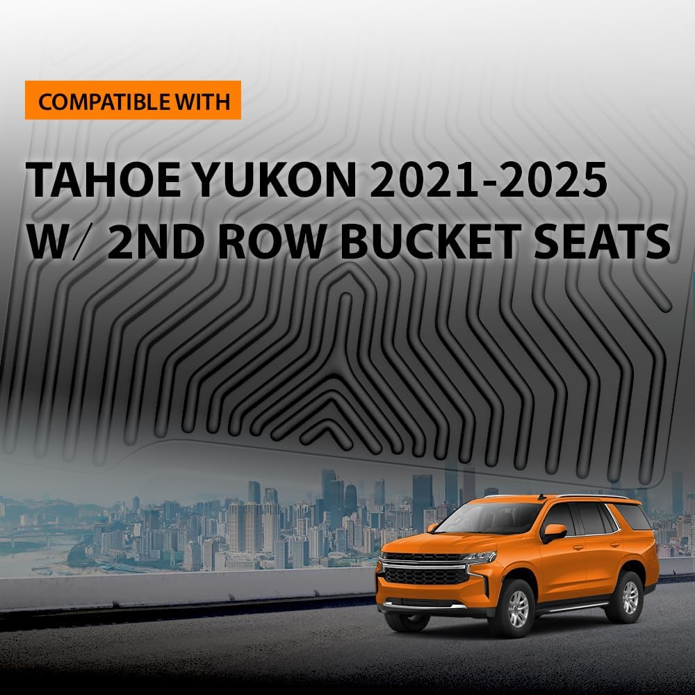 - Material Thermoplastic Elastomer (TPE) : Vehicle Service Type Compatible with 2021 2022 2023 2024 2025 Chevy Tahoe & GMC Yukon w/ 2nd Row Bucket Seats Compatible with 2021 2022 2023 2024 2025 Chevy Tahoe & GMC Yukon w/ 2nd Row Bucket Seats See more