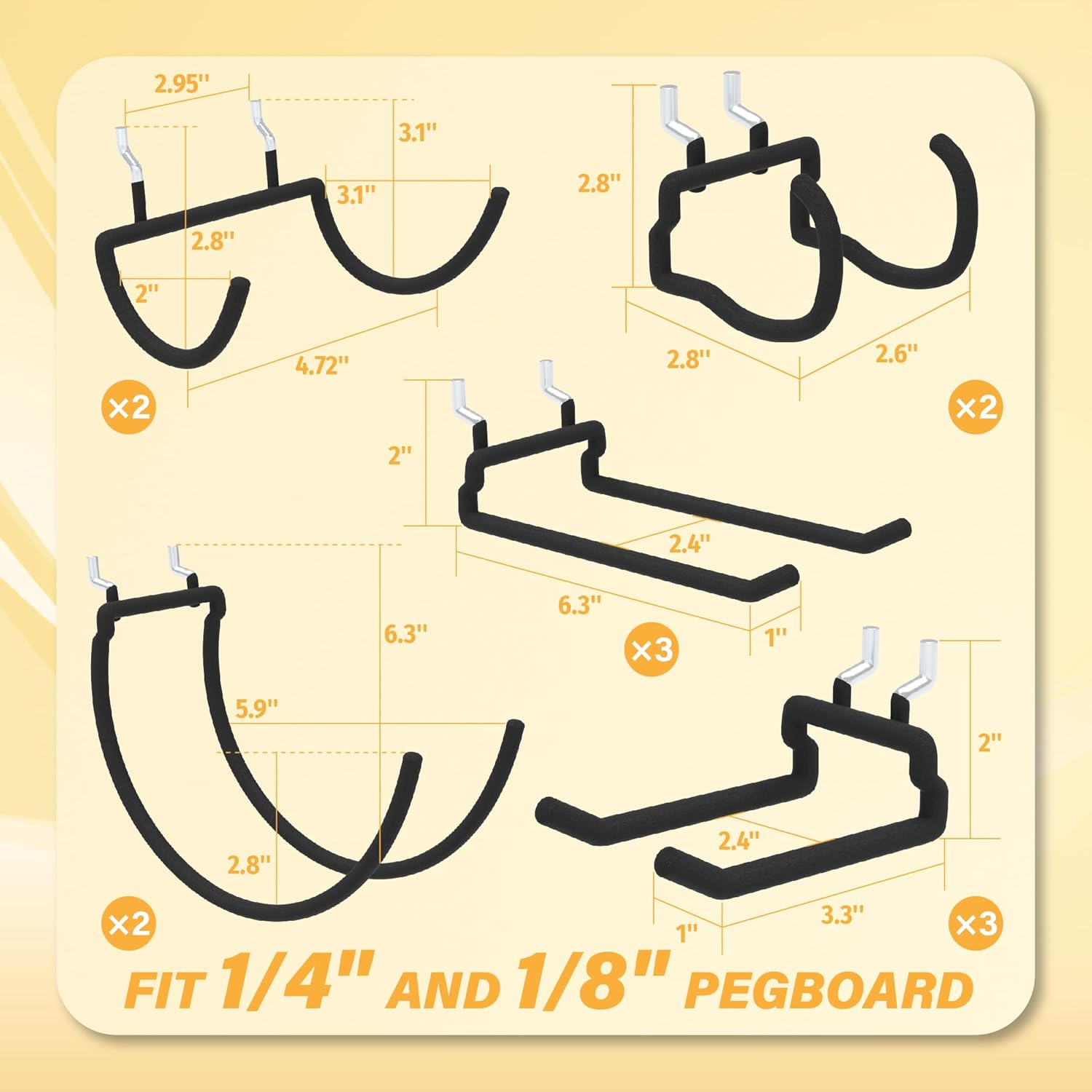 - Perfect Fit Design - Specifically crafted for 1/4" pegboard, these pegboard hooks ensure a secure and seamless fit. The peg board hooks for hanging are designed to provide a stable and organized storage solution for your tools and accessories.
