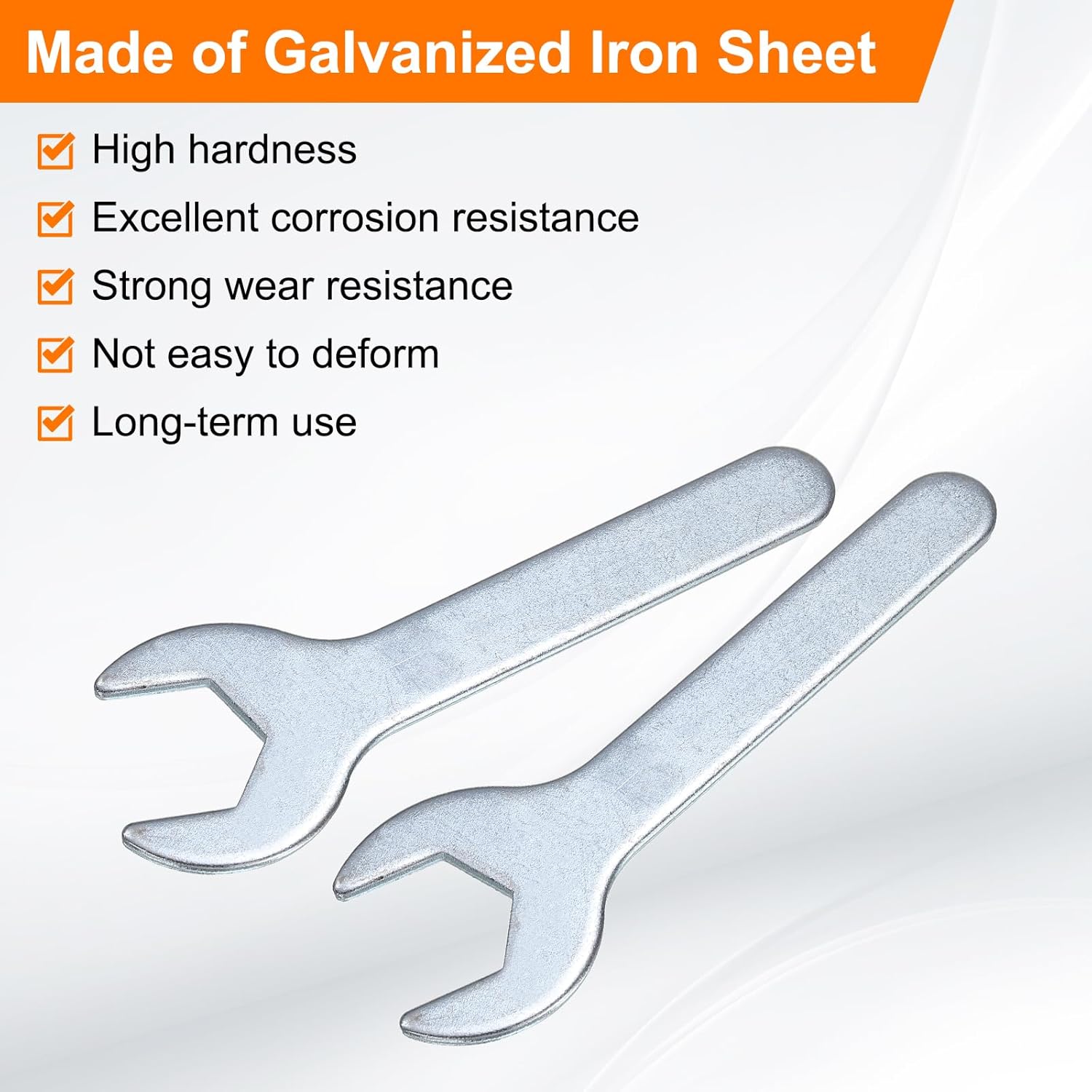- Long Lasting - Our single open-end wrench is made of an iron plate, which has high hardness and excellent corrosion resistance. The surface galvanizing improves its wear resistance, keeps its surface smooth and reduces wear, is not easy to deform, and can be used for a long time.