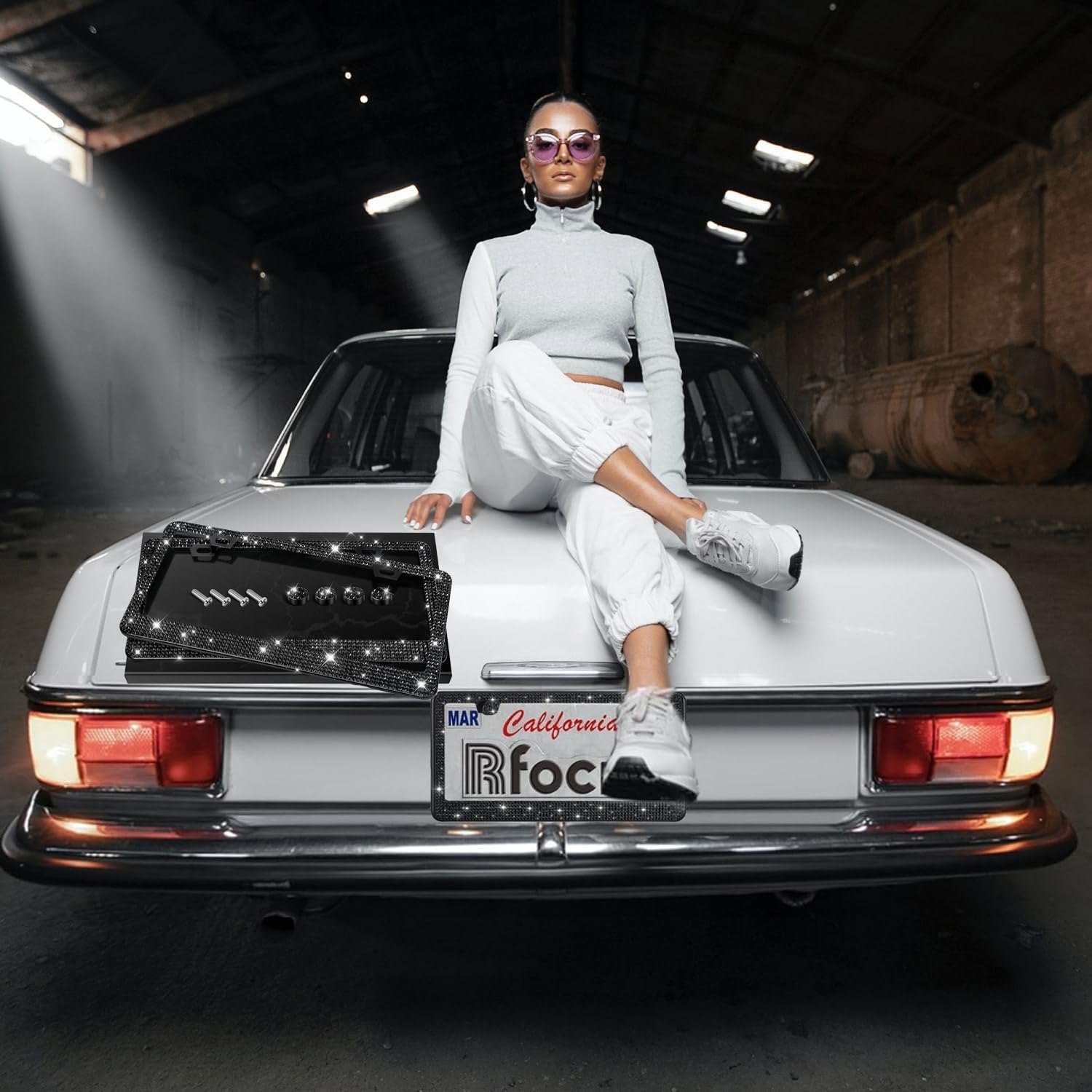 - 【Super Sparkly License Plate Frames】: Why go for boring plain license plate frames when you can go super fab with a car plate frame with actual rhinestones in it? Give your car a new cool look now! 2 Pack license plate frames for women are sure to make your car catch everyone’s eyes on the road