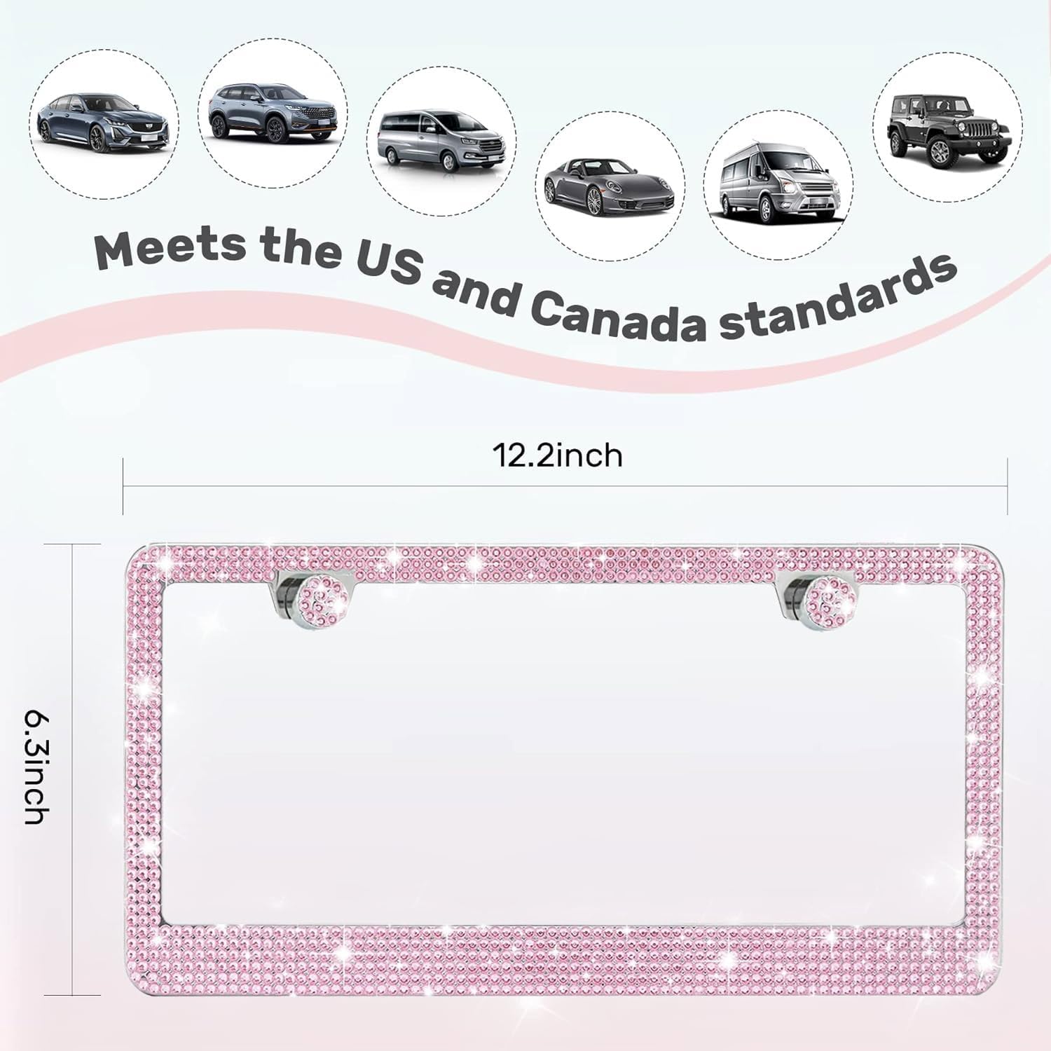 - 【Super Sparkly License Plate Frames】: Why go for boring plain license plate frames when you can go super fab with a car plate frame with actual rhinestones in it? Give your car a new cool look now! 2 Pack license plate frames for women are sure to make your car catch everyone’s eyes on the road