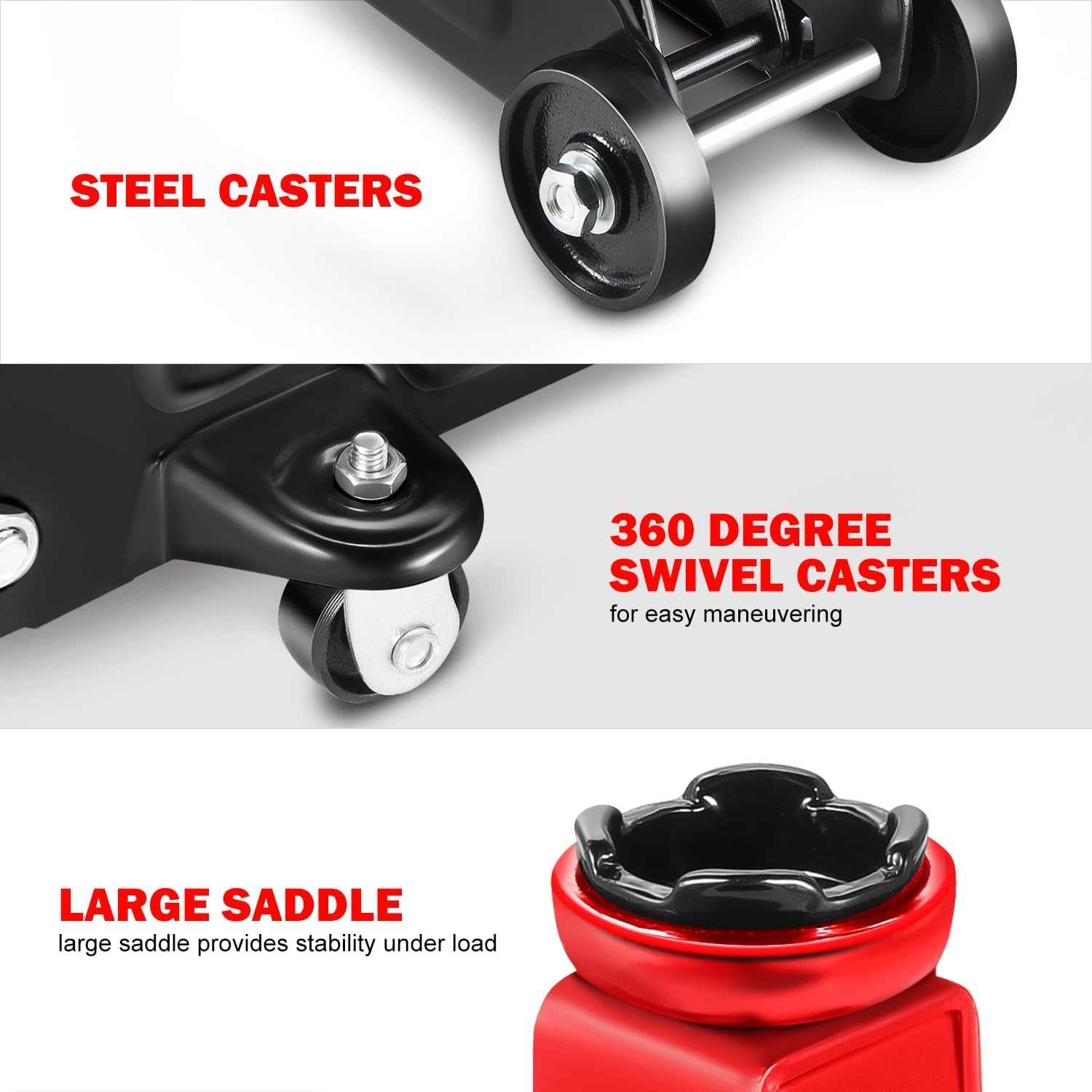 - OVERLOAD PROTECTION & EASY JACK POSITIONING - Built-in dependable safety release valve triggers in the event of an overload to prevent damage or injury. The large saddle provides extra stability and helps protect your vehicle.