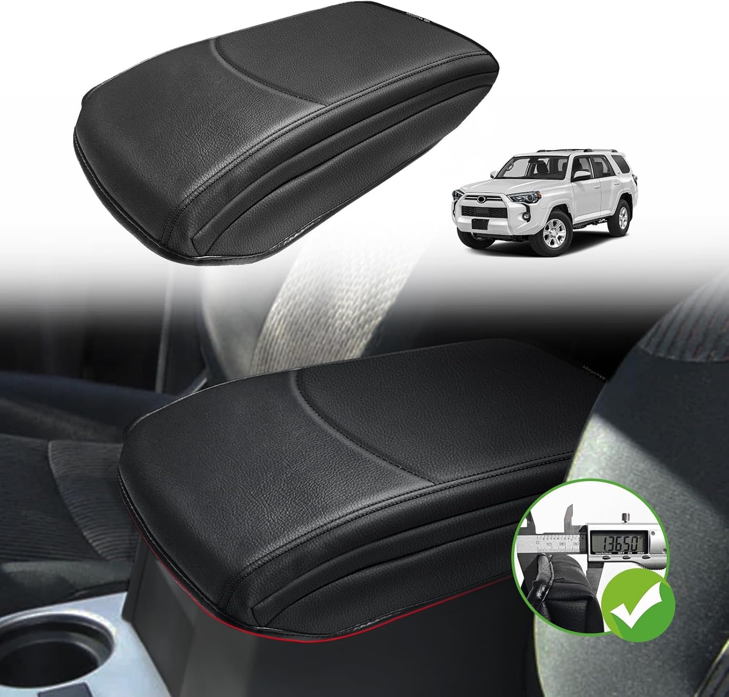 Muslogy Center Console Armrest Cover Compatible with Toyota 4Runner 2010-2024 Comfort Armrest Pad Arm Rest Cushion Vegan Leather Protector 1-Inch Extra Thick