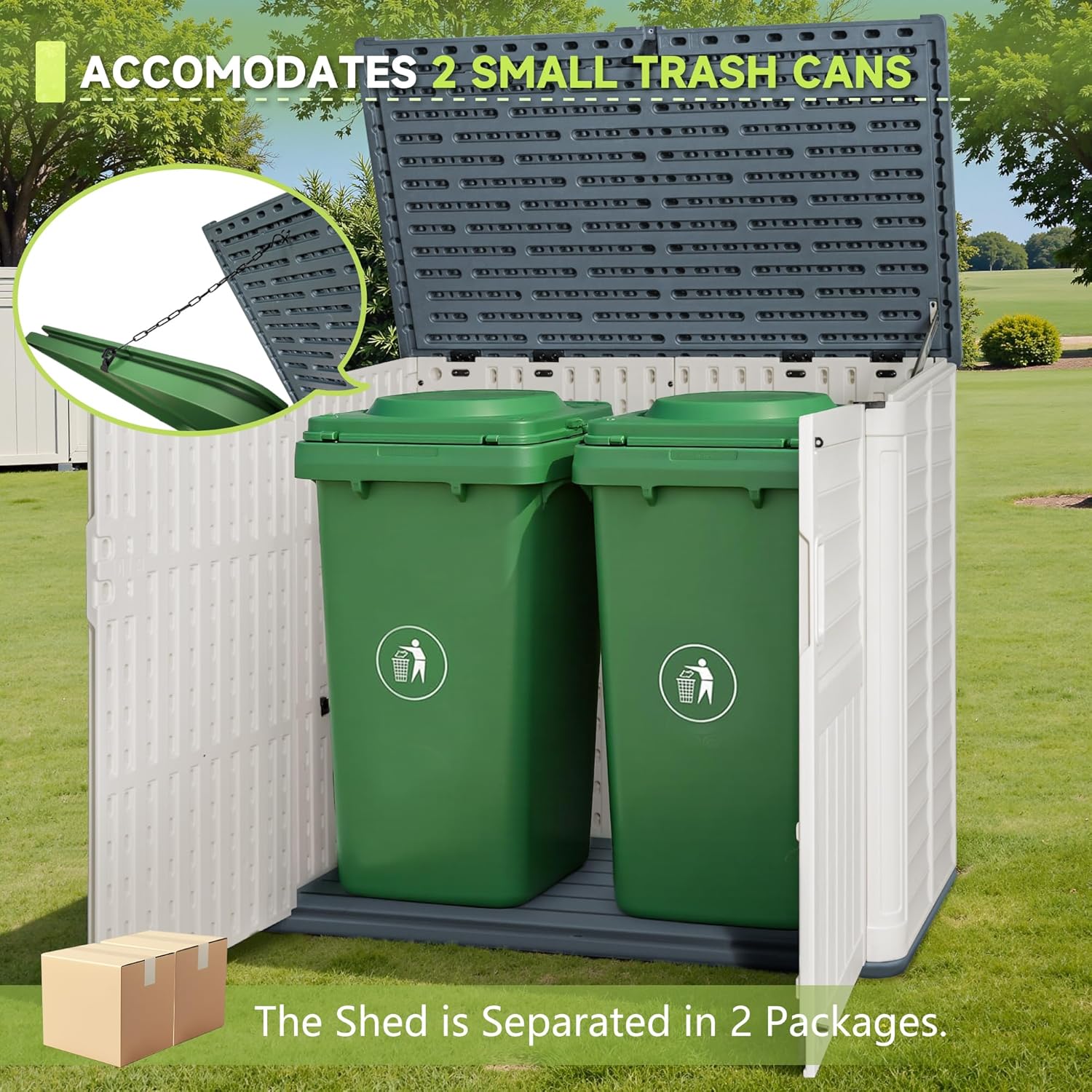- About Delivery: The storage shed is separated in 2 packages.