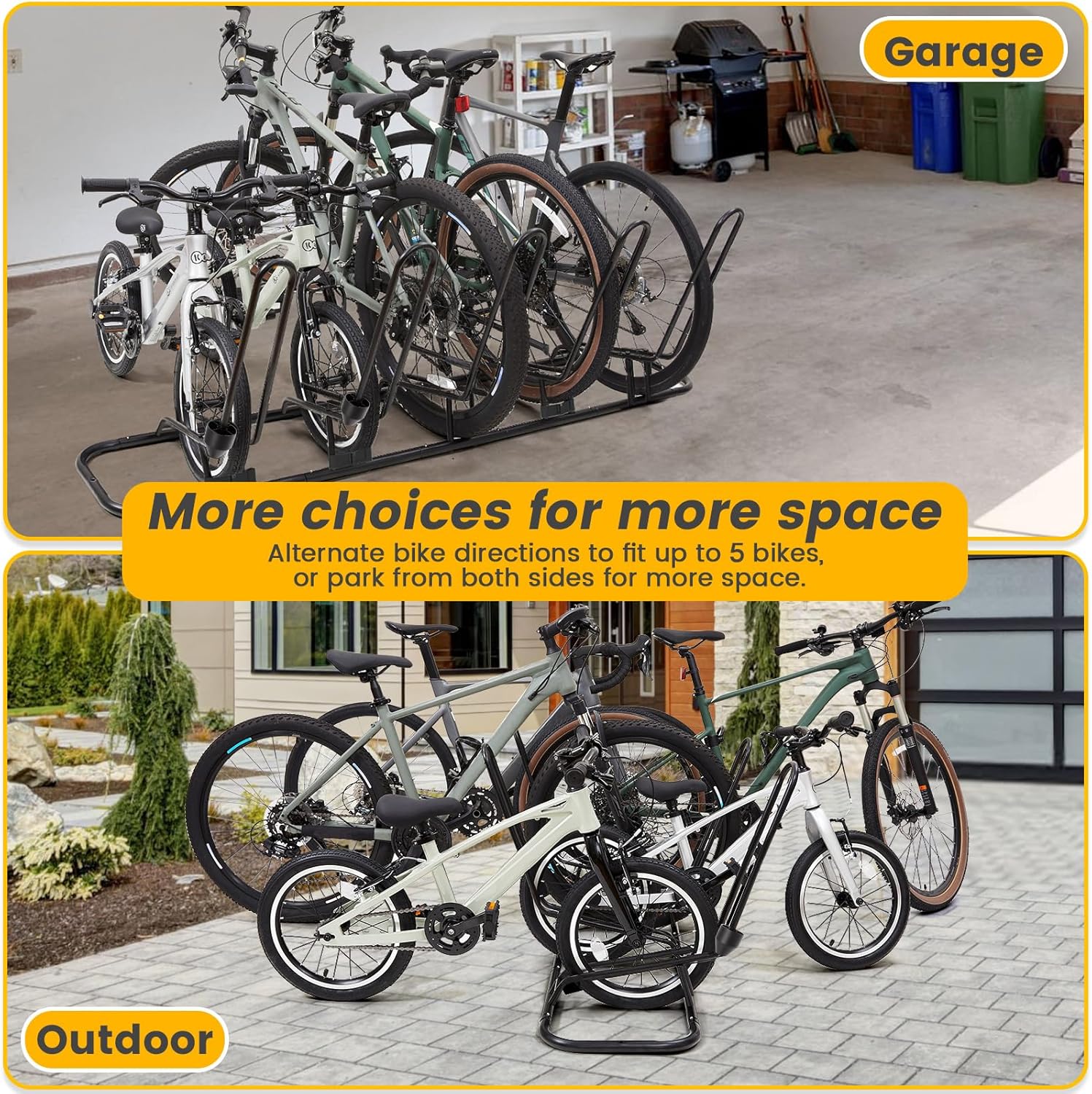 Floor Bike Rack for 5 Bikes, Safeguard Disc Brakes & Derailleurs Design, Waterproof Bicycle Stand Indoor/Outdoor/Garage Use, Fits 12"-29" Tires, Upgraded 0.63" Steel Tubes for Stability