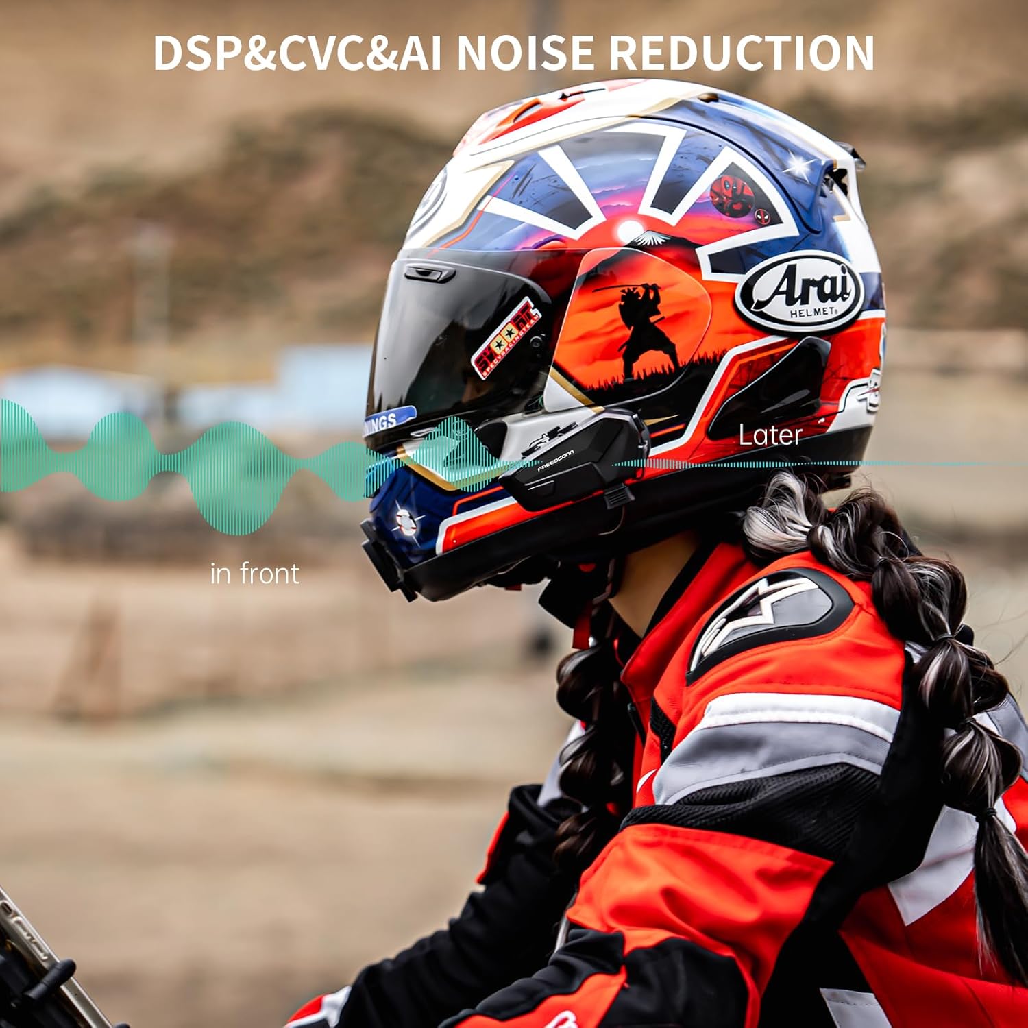 - 【Helmet-Specific Audio】Interchangeable pro-grade mics: Boom mic (noise-dampening for full-face helmets), Clip mic (360° adjustable for modular helmets), IP65 weatherproof certification ensures reliability in heavy rain