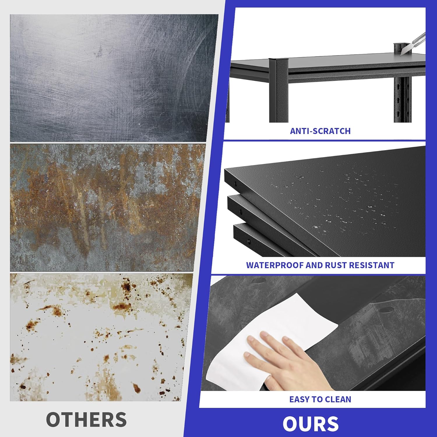 - š HEAVY-DUTY LOAD-BEARING DESIGN: This metal shelves are made of high-strength steel to create a strong load-bearing capacity, easily carrying tools, equipment, storage boxes and other heavy objects, stable and durable, safe and worry-free!