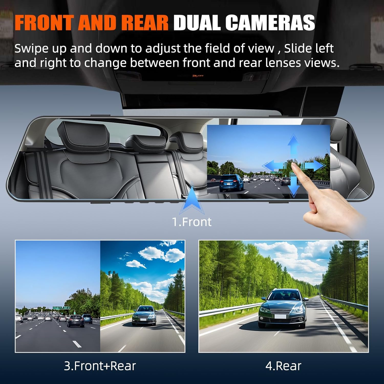 - 【Easy installation&Full HD Touch Screen】Record HD Video in 1080P mode. Capture all the action in crystal clear HD video. Video and audio are automatically recorded in an endless loop and saved in memory card. Record traffic incidents, scenic travel, unexpected moments or any social media worthy video