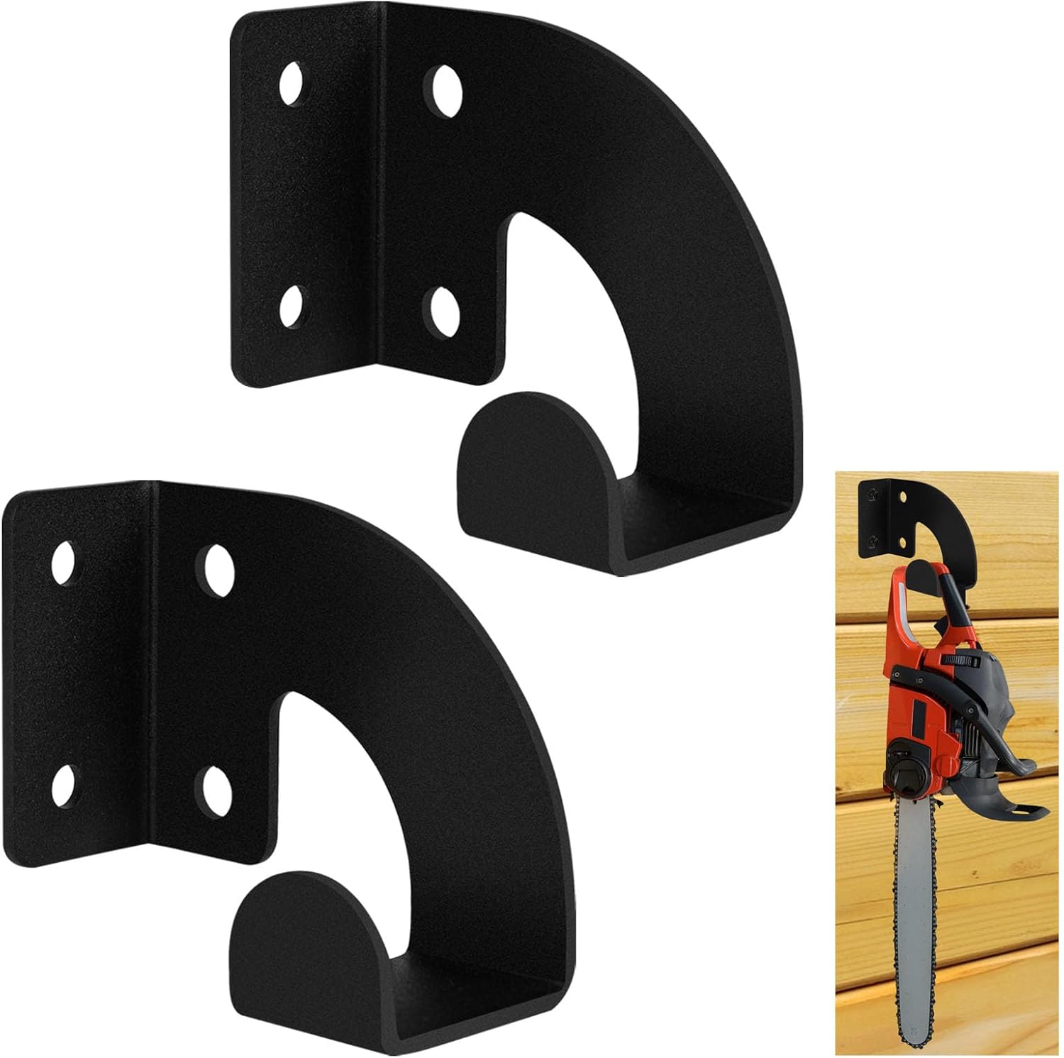 - Efficient and Practical - Heavy duty chainsaw wall mount is suitable for most chain saws or tools with handles, it is an excellent choice for storing chain saws and chains, but also for shovels, brooms, cables, hoses, etc. It can be installed in a garden, garage, barn or workshop