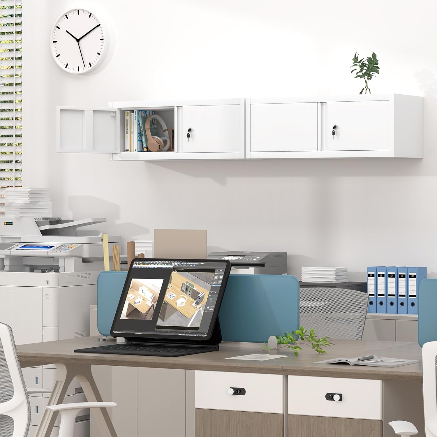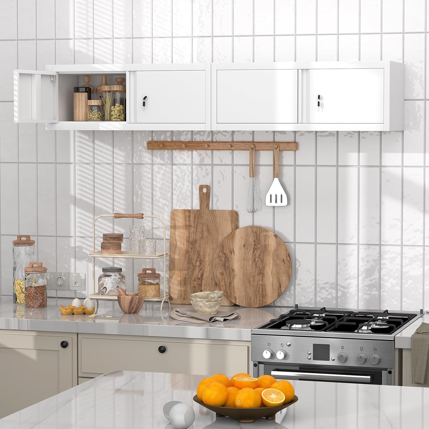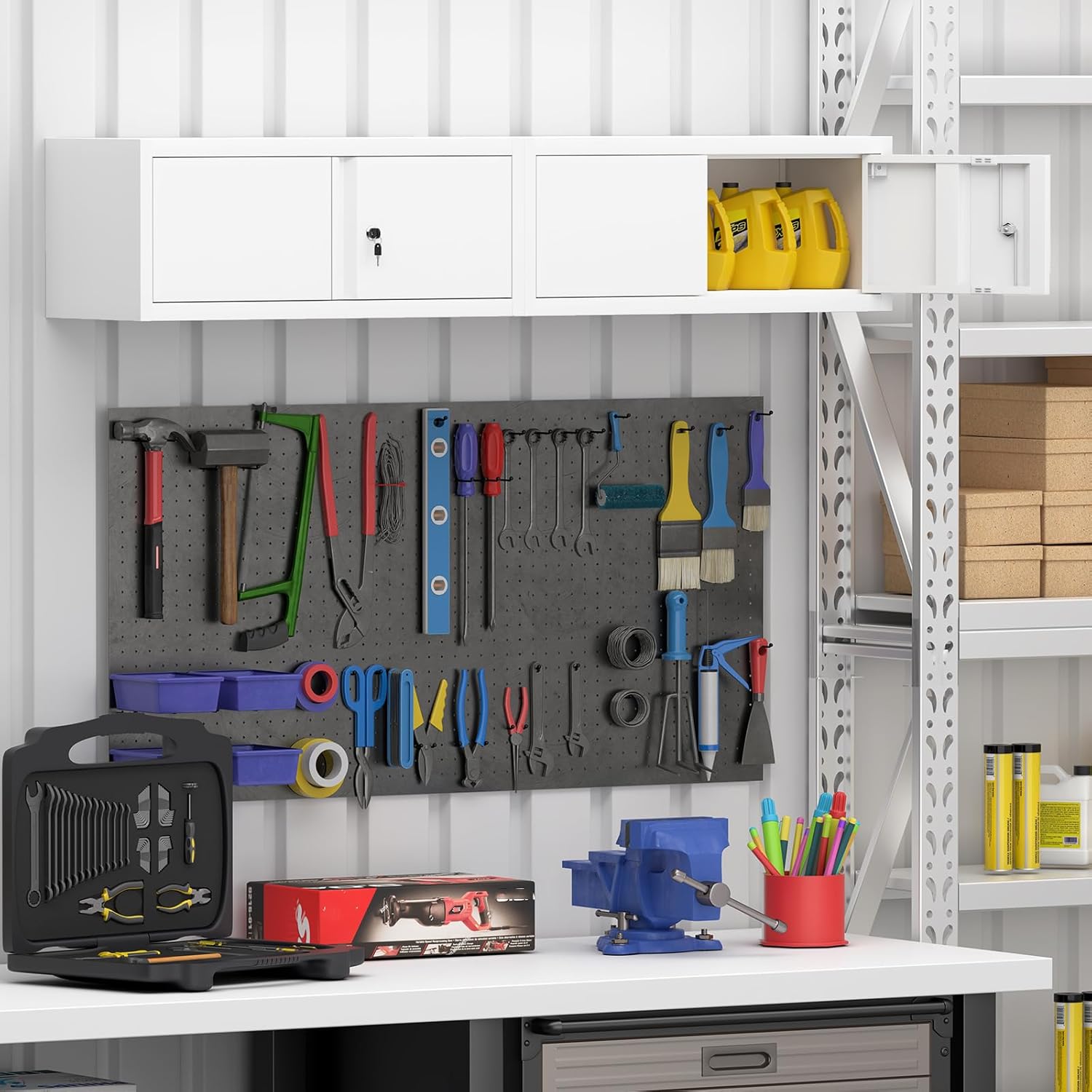 GREATMEET Locking Cabinet, Garage Storage Cabinet, Metal Wall Mounted Storage Cabinets with Doors for Garage, Hanging Floating (White, 13" H)