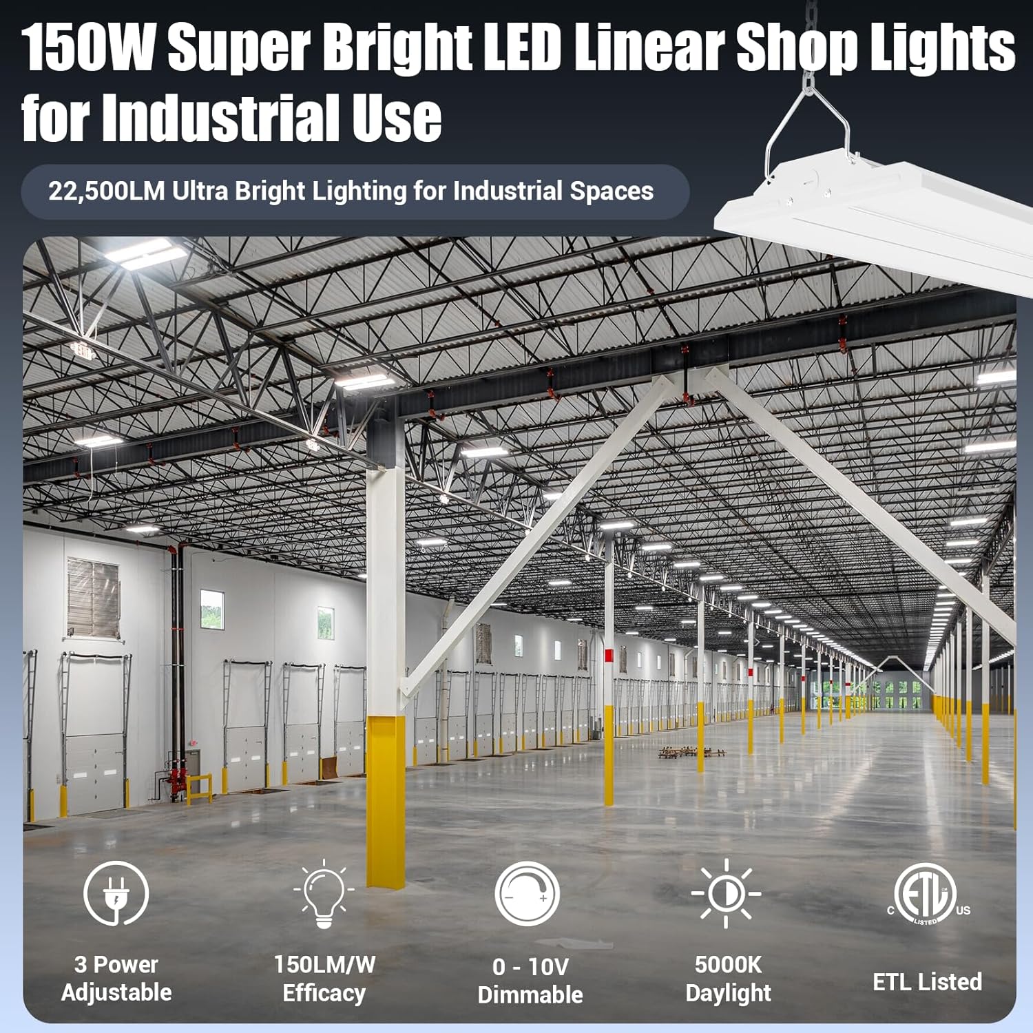 High Bay LED Shop Light 1.35FT 150W 22500LM 0-10V Dimmable 5000K Daylight 120-277V, Commercial LED Linear High Bay Lights for Warehouse Workshop Supermarket Stadium Library, ETL
