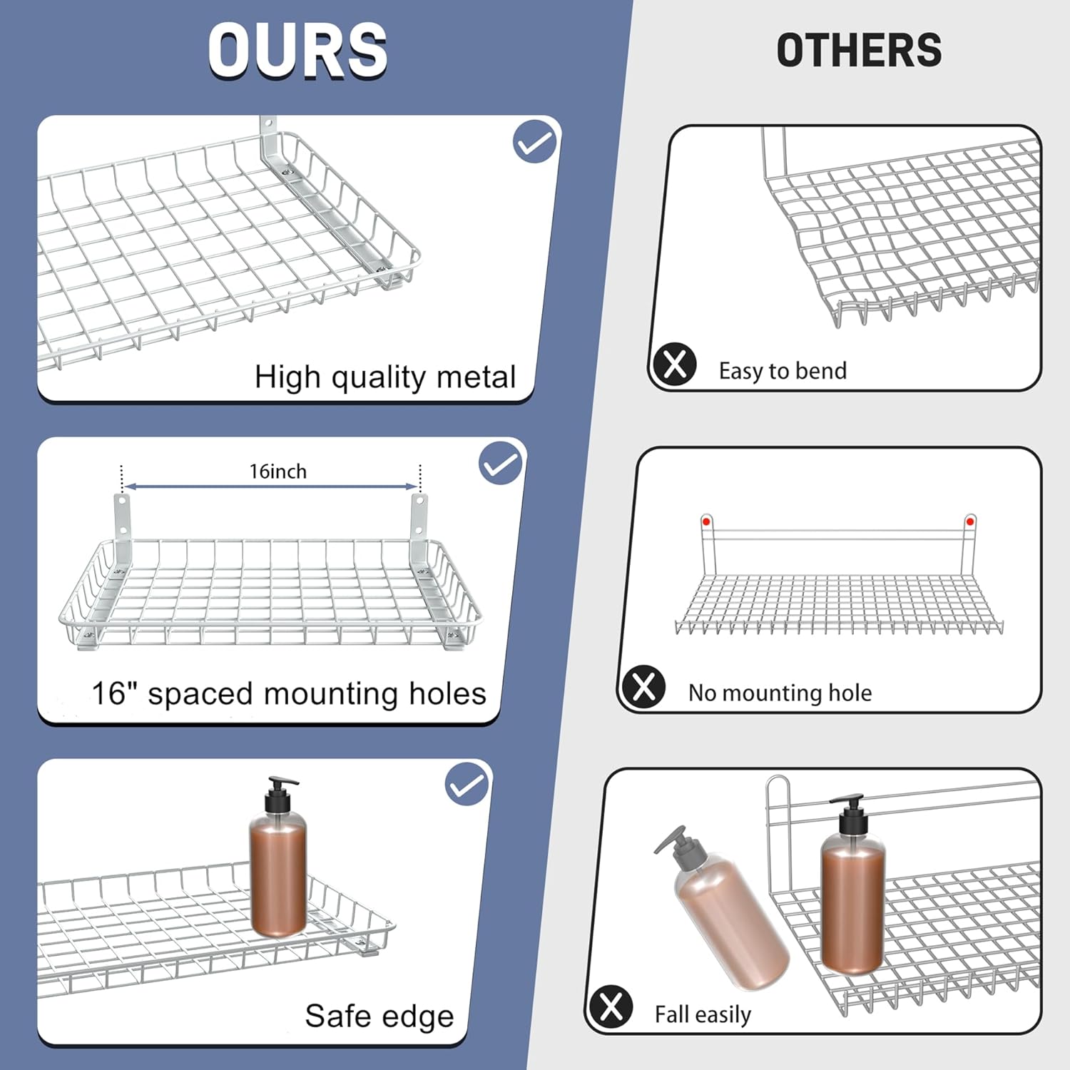 - Simple 16" Stud Mounting: Features 16-inch spaced holes for direct installation into wall studs. Comes with all hardware and step-by-step instructions—mount the shelves side by side or stacked to match your storage layout
