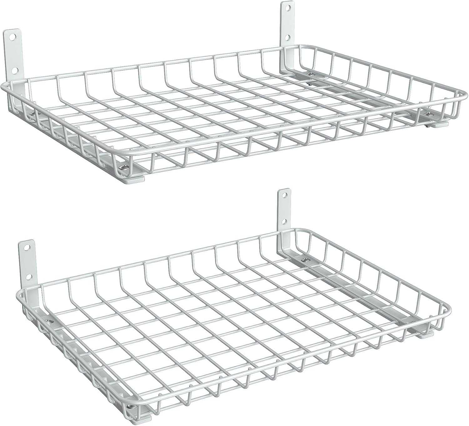 - Sturdy Metal Shelves: Made from high-quality steel with a powder-coated finish, these garage wall shelves hold up to 60 lbs per shelf