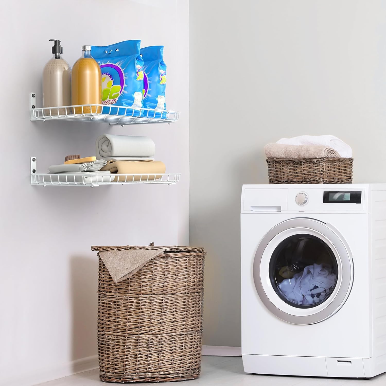 TORACK 2-Pack 12x18 Inch Wall-Mounted Shelves, Garage Wall Shelf for Closet & Laundry Room, Heavy-Duty Floating Shelves Hold Up to 60 lbs(White)