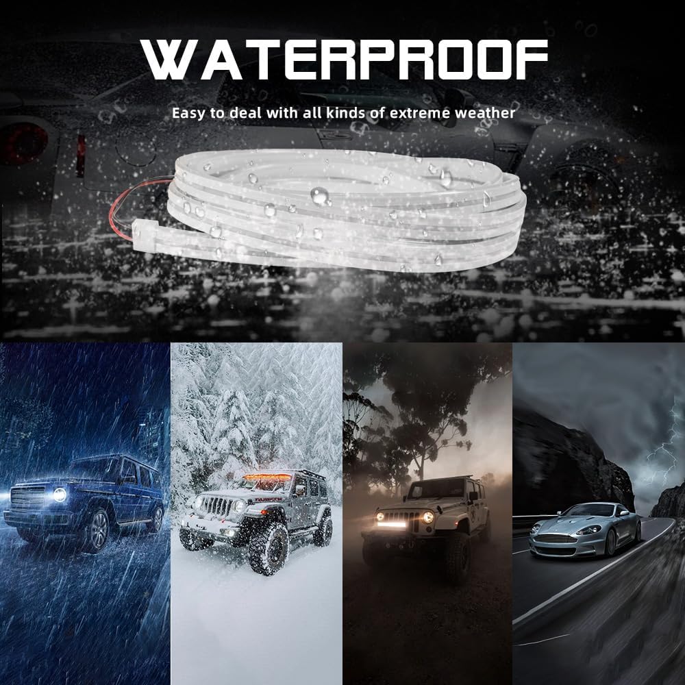Car LED Strip Light For Trunk, 158Inch IP67 Silicone Waterproof Neon Light Strip Embedded, Flexible Cutting Universal Auto Interior Lights(Warm White)