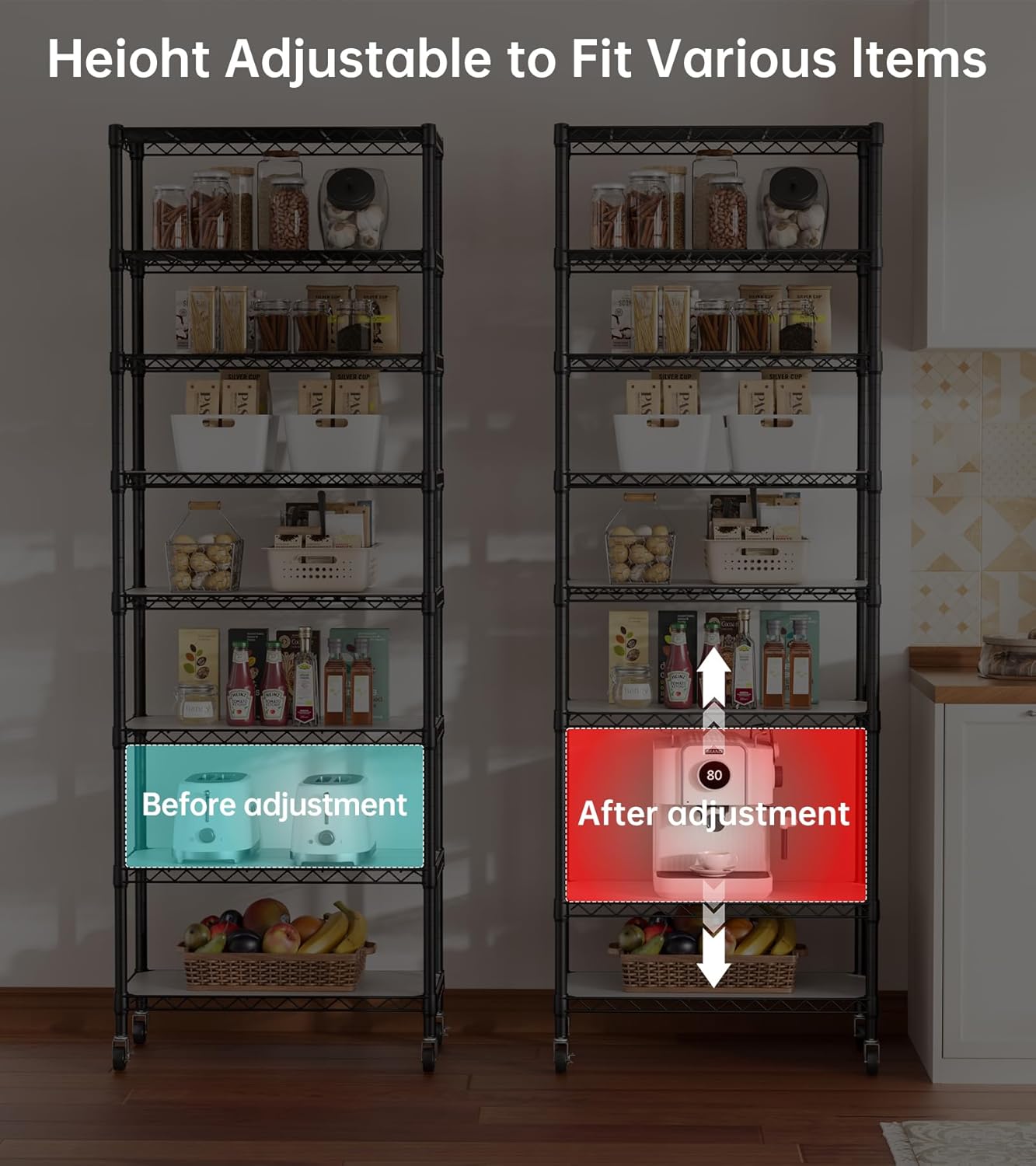- Convenient Home Storage: Metal wire shelves with adjustable spacing make perfect for narrow spaces or room corners such as kitchens, bathrooms, laundry rooms, balconies, garages, entries, or offices.