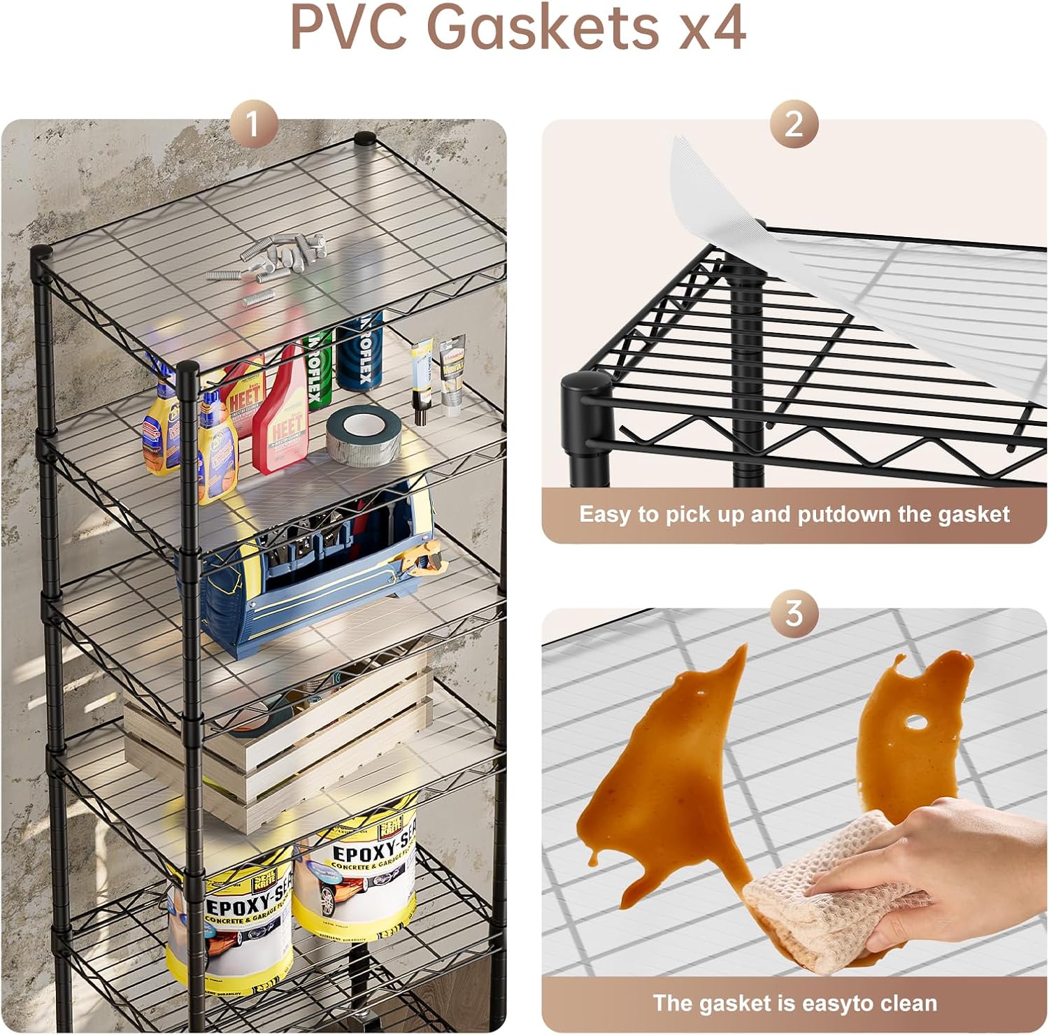 - Rustproof: This shelving has been specially coated to prevent rust or corrosion. You can rest assured to place it in your kitchen or bathroom shelves laundry room organization and storage