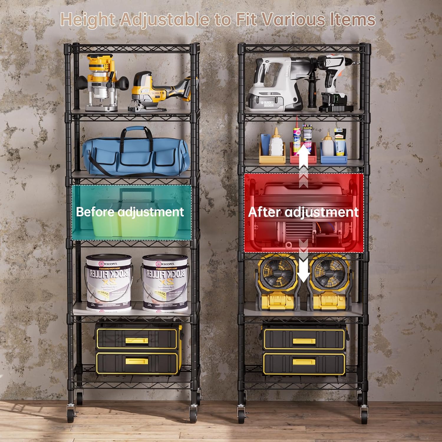 - Convenient Home Storage: Metal wire shelves with adjustable spacing make perfect for narrow spaces or room corners such as kitchens, bathrooms, laundry rooms, balconies, garages, entries, or offices.
