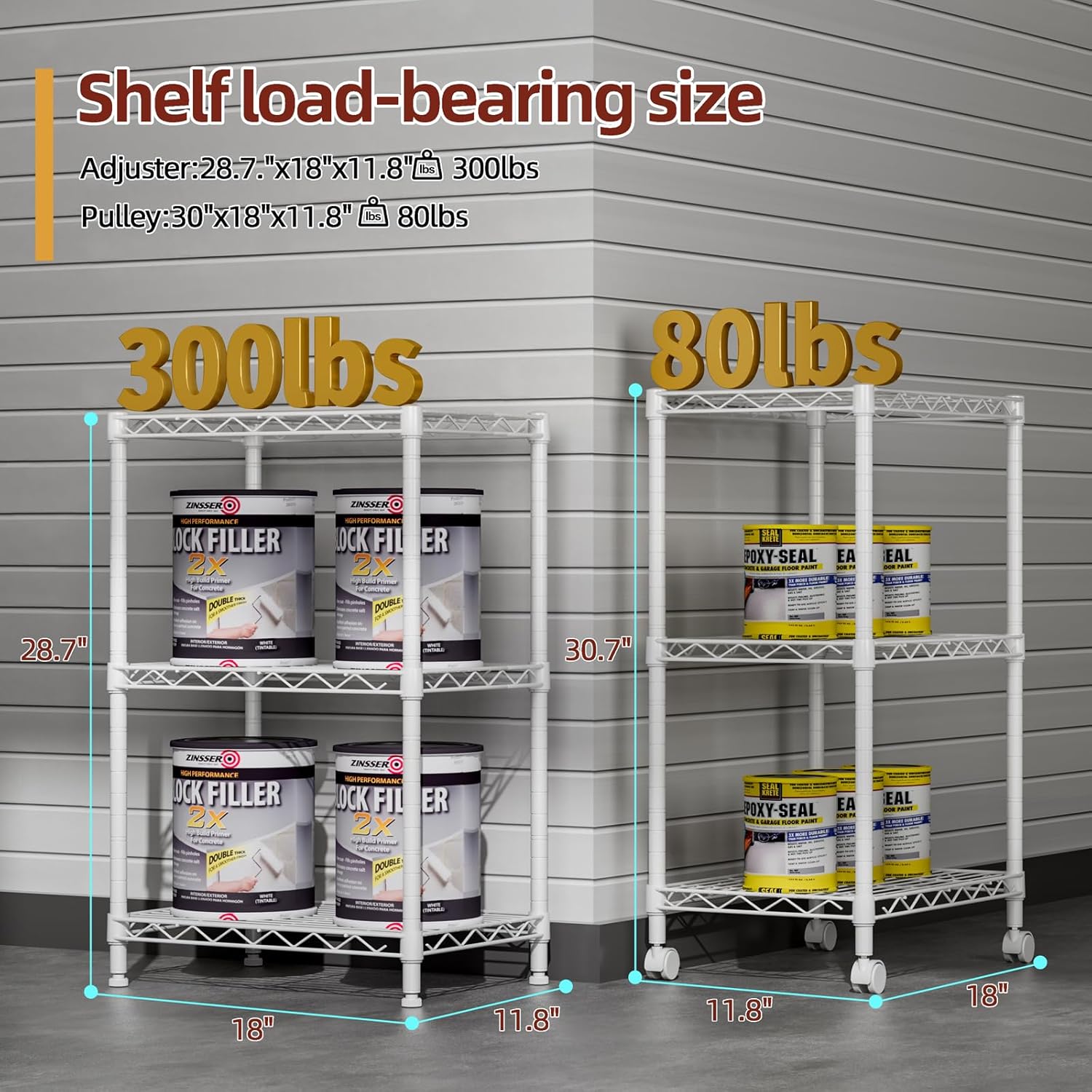 - Convenient Home Storage: Metal wire shelves with adjustable spacing make perfect for narrow spaces or room corners such as kitchens, bathrooms, laundry rooms, balconies, garages, entries, or offices.