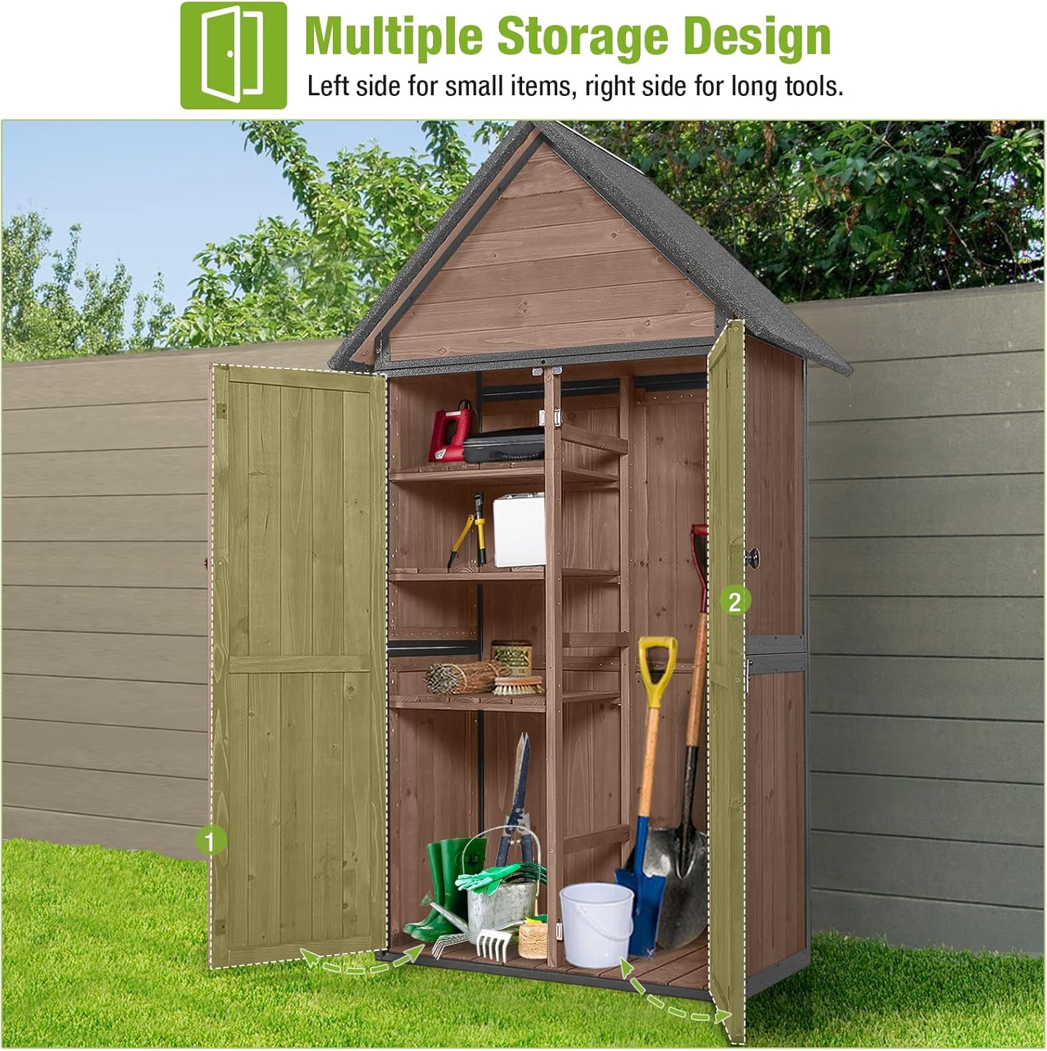 GUTINNEEN Shed Outdoor Storage Upgraded with Durable Metal Frame Garden Shed Tool Storage Cabinet with Wooden Floor Adjustable Shelfs 2.5 x 1.4FT (Dark Color)