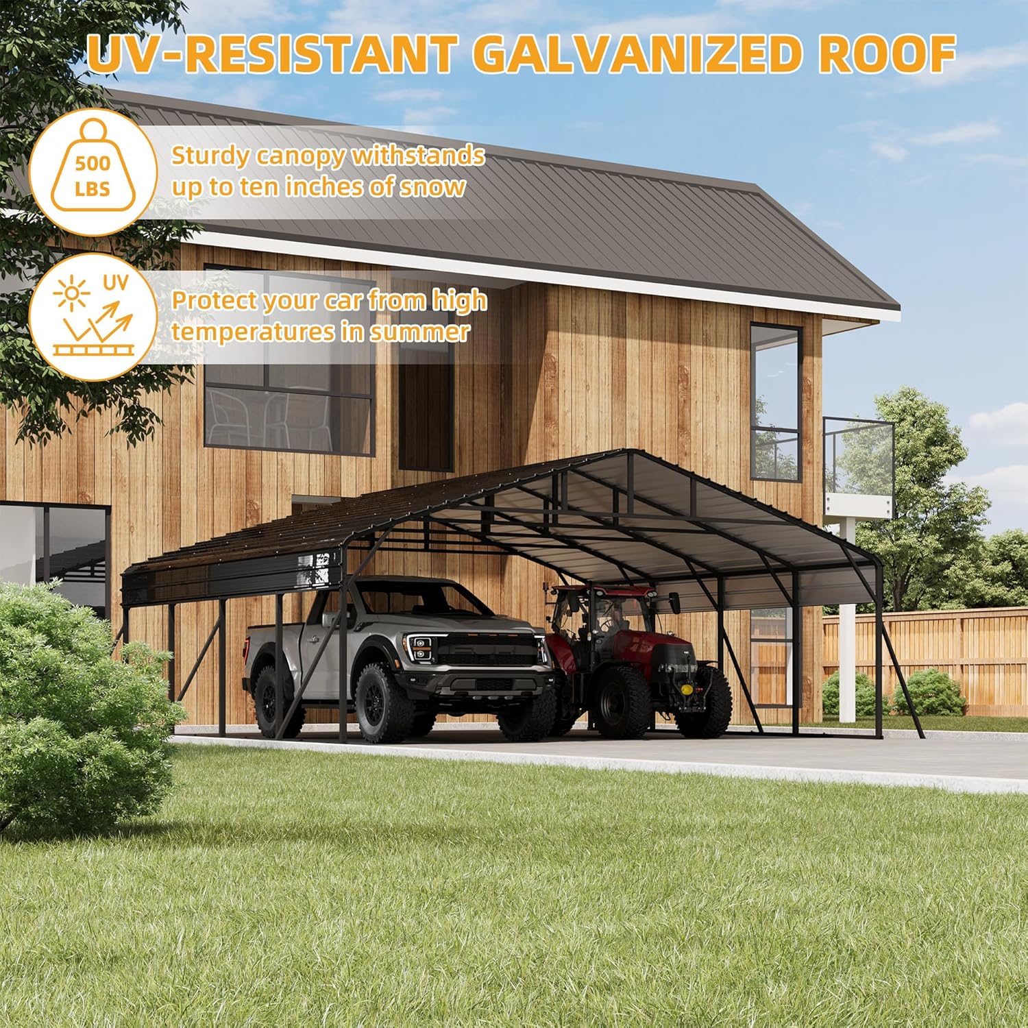 - MULTI-USE METAL CARPORT - The outdoor metal carport with a heavy-duty galvanized canopy and garage car shelter provides plenty of space for vehicles and trucks. It can act as a carport canopy and a shelter for outdoor activities such as parties, weddings, and trade shows. The gray finish gives your backyard an elegant and stylish appearance. Customize your outdoor life now