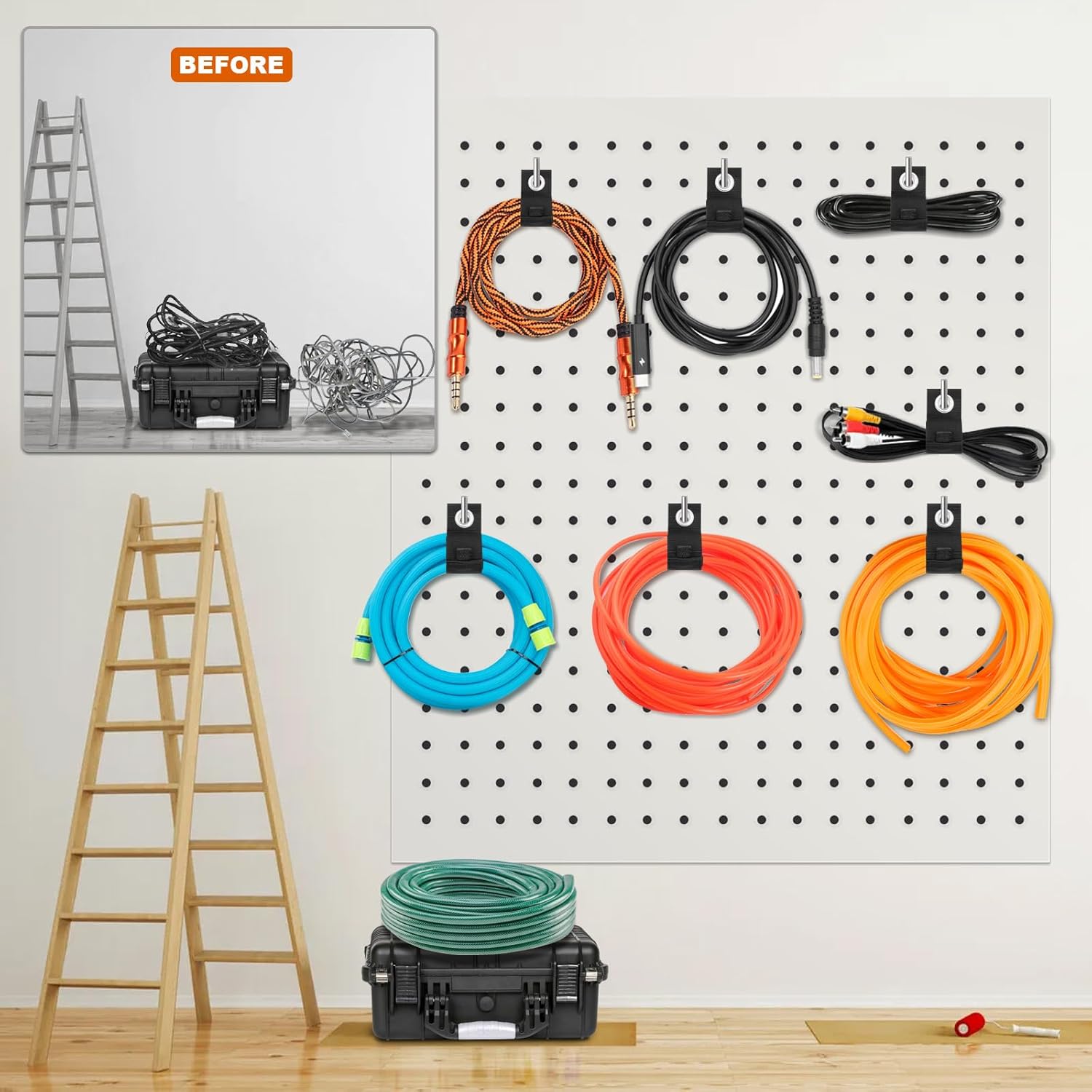 - [Design with Holes]: rust-proof metal rings can easily hang cables, hoses, ropes. Can be hung from pegboard hooks.