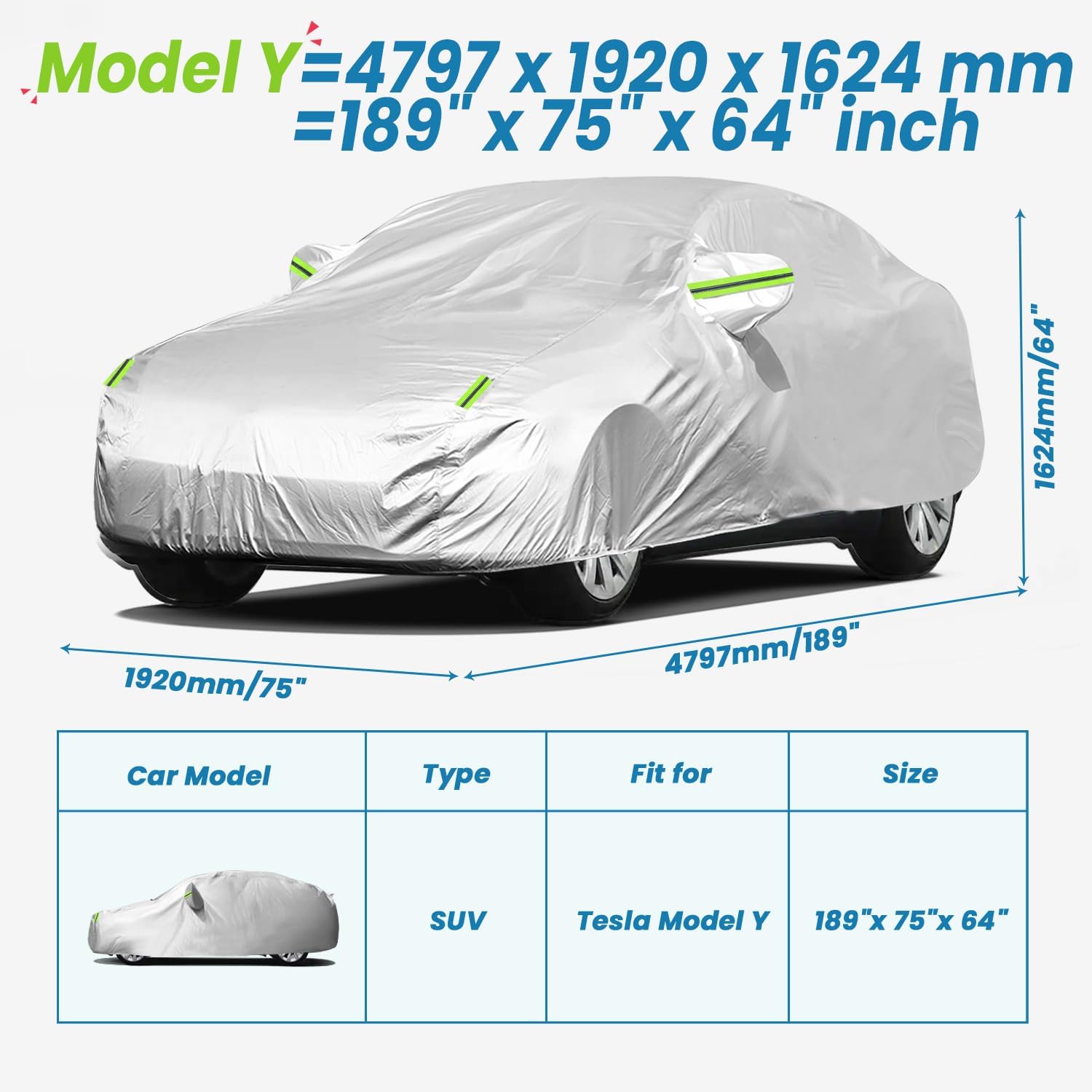 - Precision Custom Fit for Tesla Model Y (2020-2024): Exclusive 3D laser-cut tailoring ensures seamless integration with your Tesla Model Y’s aerodynamic contours (size: 189"L x 75"W x 64"H), providing full coverage. Reinforced stretchable seams and a weather-resistant elastic hem adapt to temperature changes, maintaining a secure, gap-free fit even in high winds.