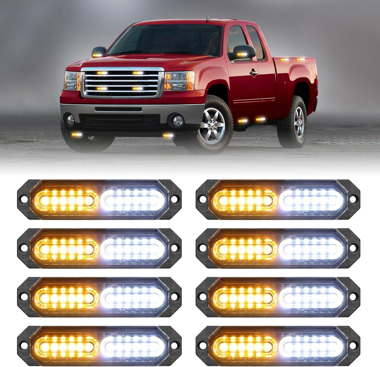 HLauto 1200T Emergency Strobe Grille Lights: 8pcs 12 LED Sync Feature Safety Warning Flashing Lights, Ultra Slim Surface Mount Hazard Caution Light for Trucks, Vehicles, Car, ATV, UTV (Amber White)