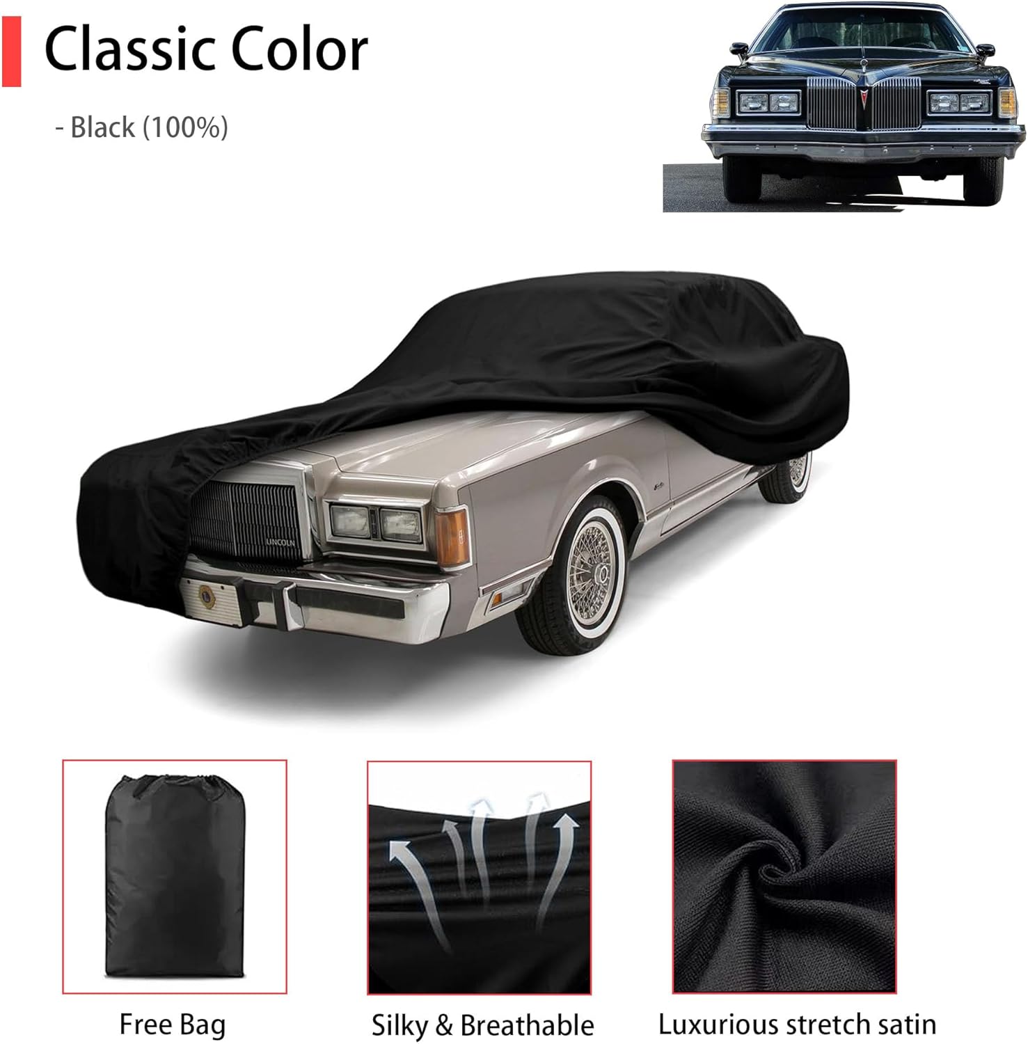 Soft Stretch Old Classic Car Cover Custom-fit for Lincoln Town Car 1981-1997 Full-Size Luxury Sedans Accessories for Indoor Underground Garage Car Show & Storage Dust Protection 219.2in