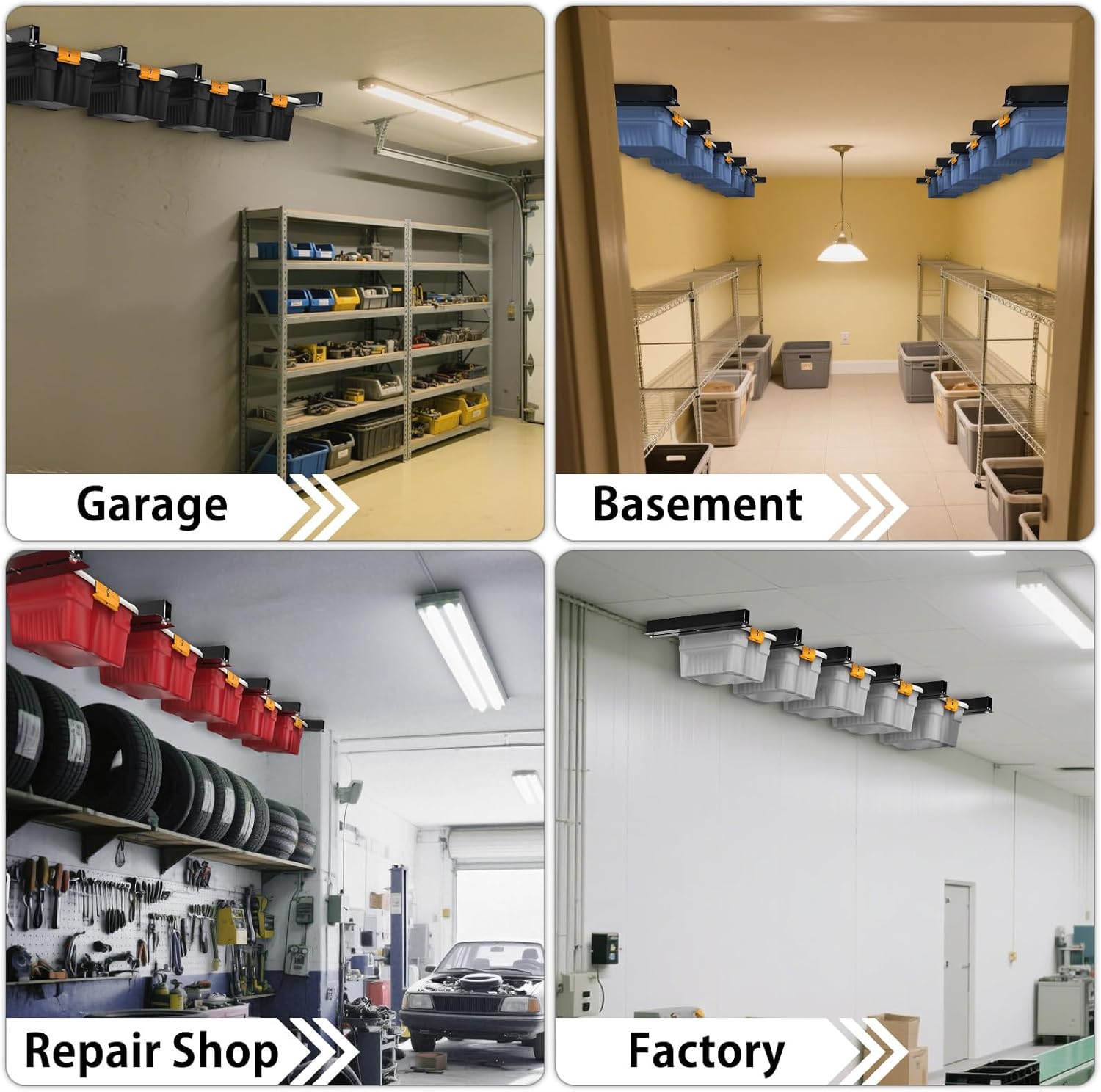 Overhead Garage Storage Rack, Heavy Duty Ceiling Storage Rack, Powder Coated Tote Storage Racks for Garages, Sheds, Storerooms (6 PCS, for 5 Bins)