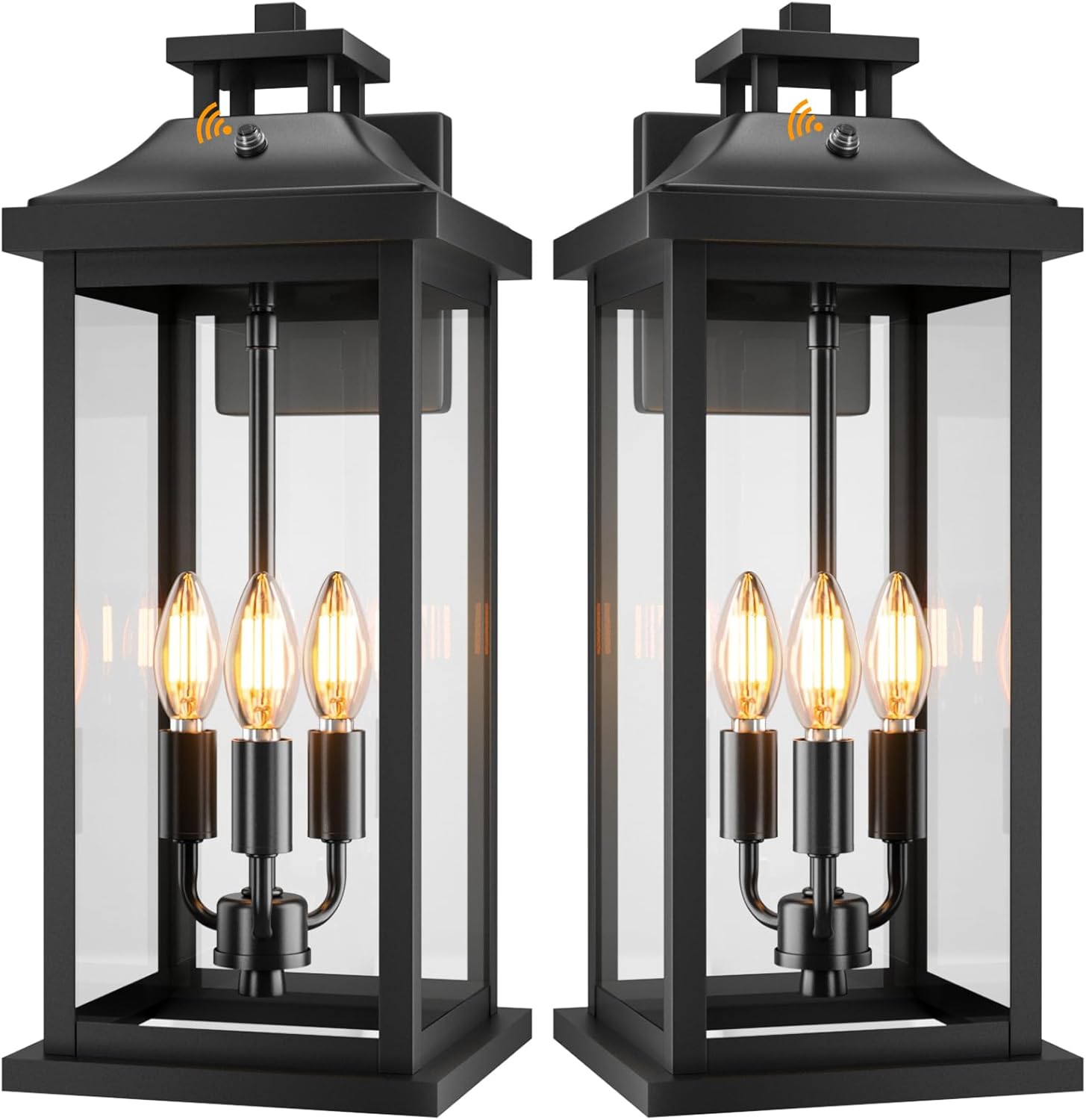 - 【Large Outdoor Porch Lights with 3-Light Design】The unique top design of 2-Tier Roof makes the visual effect better and transform ordinary space into breathtaking showcase. Substantial 3-light socket design, our dusk to dawn sensor outdoor sconce lights combine durability with aesthetics. Our clear tempered glass distributes illumination evenly. Perfect for photocell sensor front porch lights, outdoor garage lights, garden pathway lights and any other dusk to dawn sensor outside wall lights.