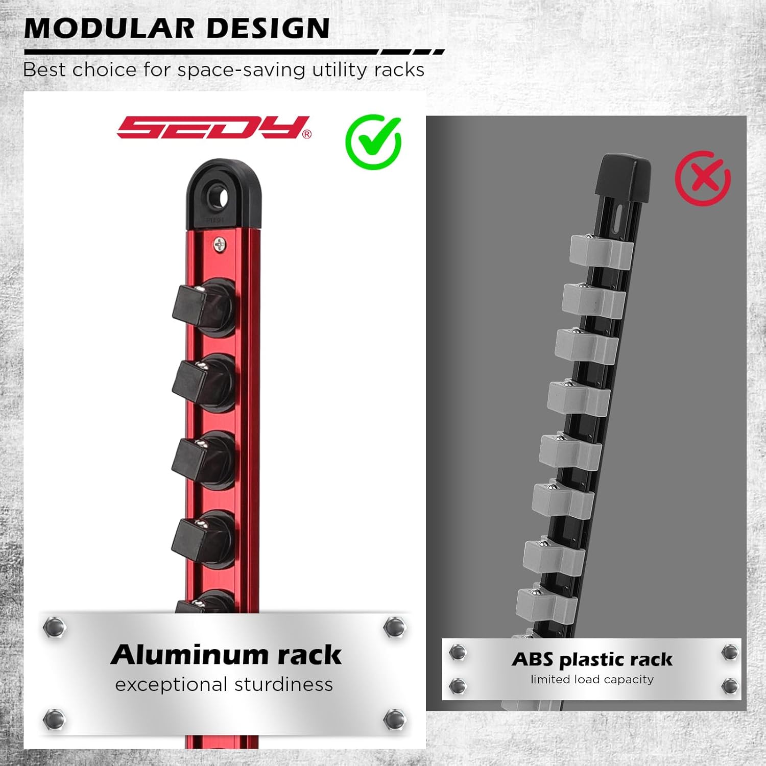 • VERSATILE STORAGE - Magnetic back and hanging holes enable attachment to any metal surface, wall or tool cart this aluminum kit offers a versatile garage storage solution for impact sockets and SEDY-approved organization