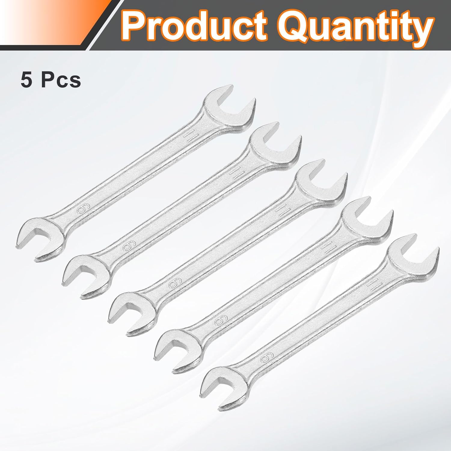 HARFINGTON 5pcs Double Open End Wrench 9mm x 11mm Metric 15 Degree Offset Angle Small Flat Head Wrench Galvanizing Open Ended Spanner for Automotive Repair Furniture Assembly